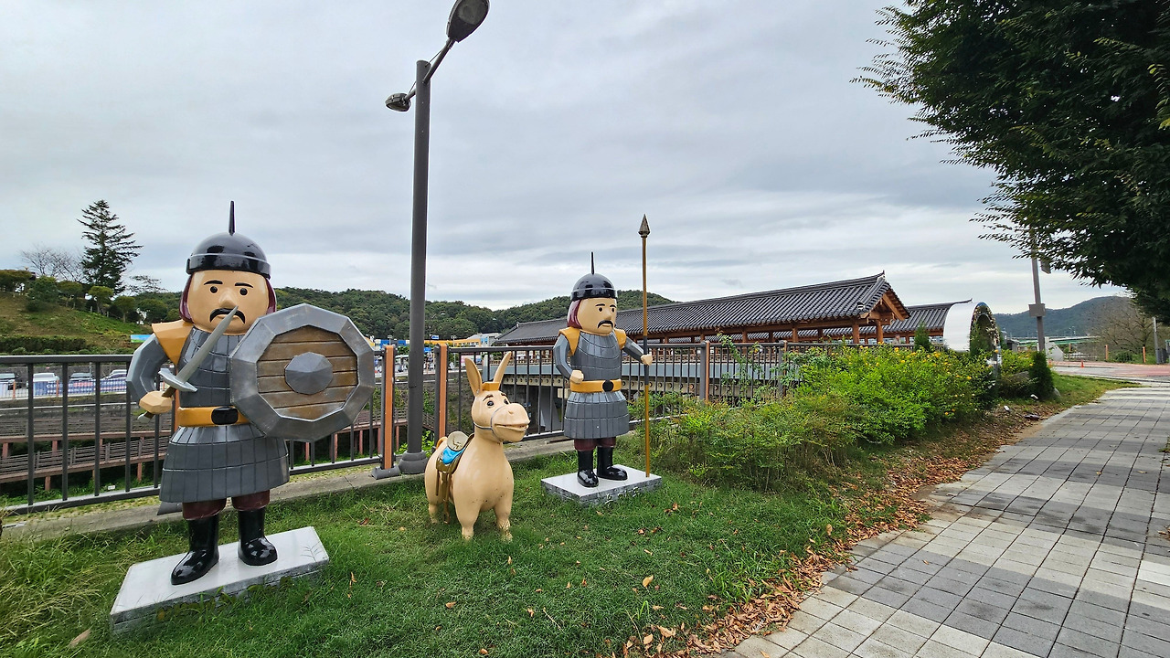 공주버스터미널에서 바로 공산성으로 올라갔다. 금서루 앞의 삼거리에 무령왕 동상이 서 있다. 잘 생기셨다. 공산성 서문 금서루 앞에는 무령왕의 동상이 세워져 있는 연문광장이 있다.