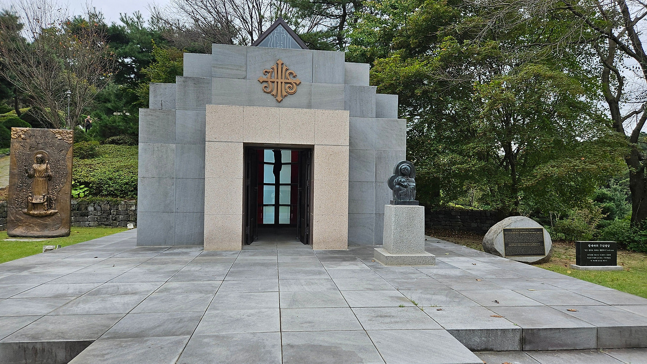 예수님의 돌무덤을 형상화한 무덤경당이다. 돌무덤은 죽음이라는 종말과 부활이라는 새로운 시작이다.