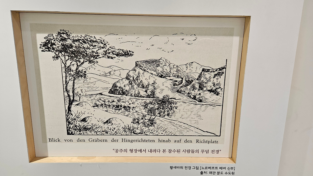 공주 형장에서 내려다본 참수된 사람들의 무덤 전경 (노르베르트 베버 신부 그림)