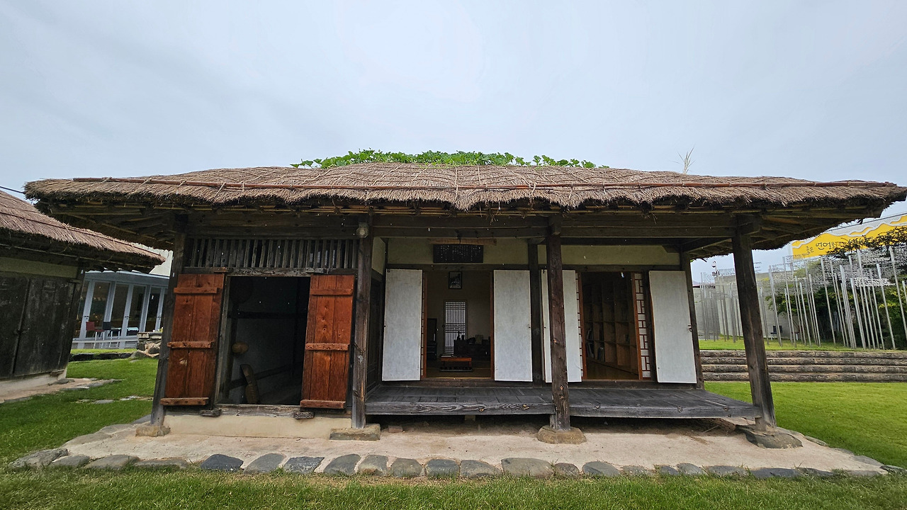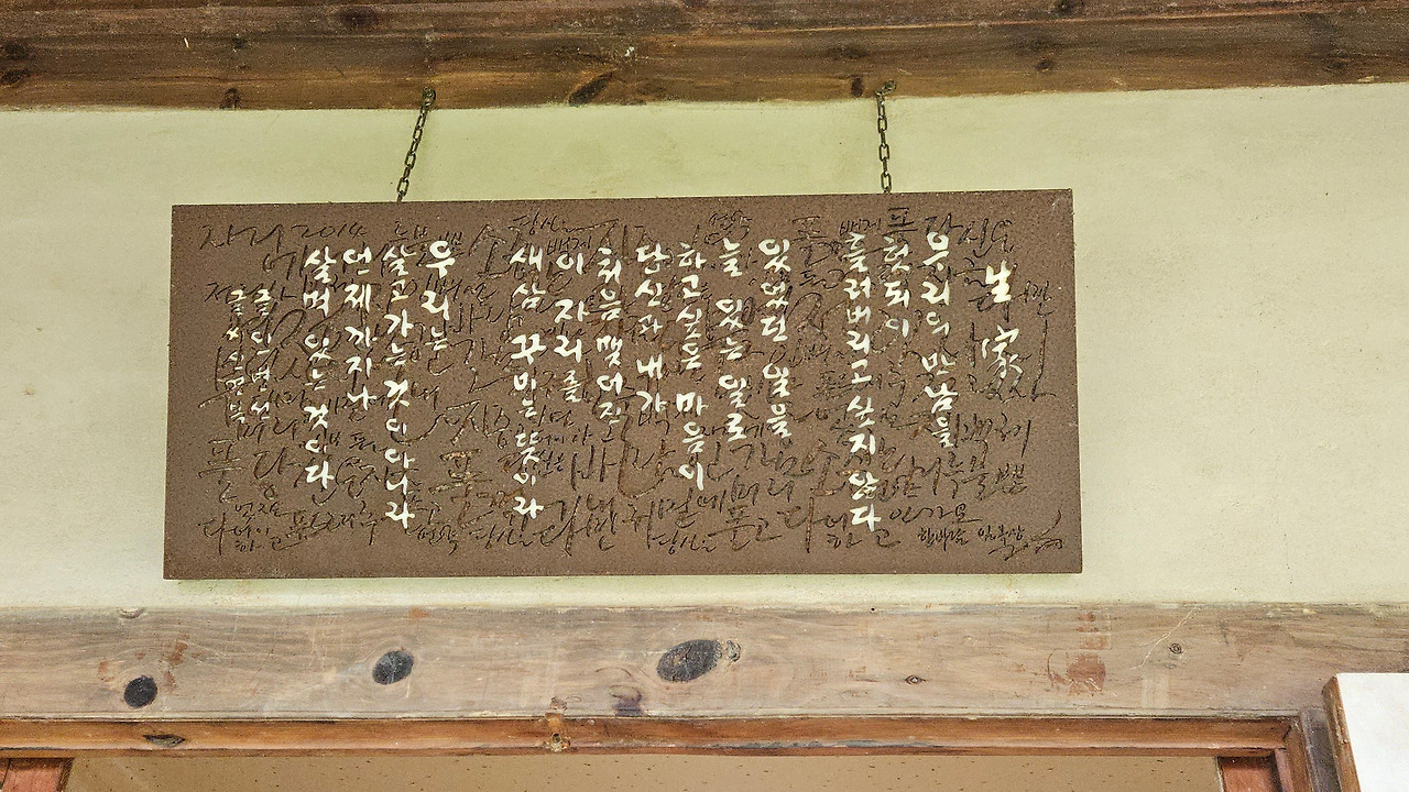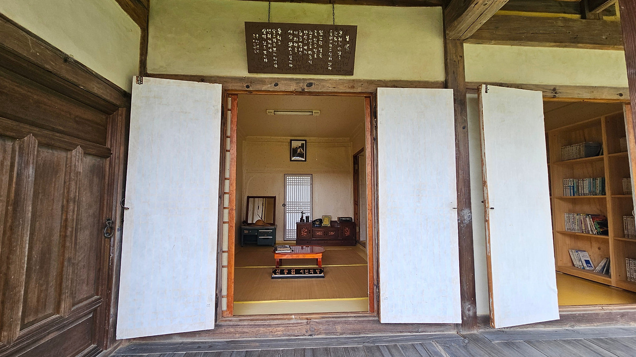 1985년 생가를 복원하였다. 생가 터에 목조 초가지붕집이 세워져 있다. 나보다 먼저 온 두 여성 방문객이 상기된 표정으로 방안 책장과 사진과 유품을 둘러보고 있었다. 말을 걸어 볼 수 없을 정도로 진지하다.