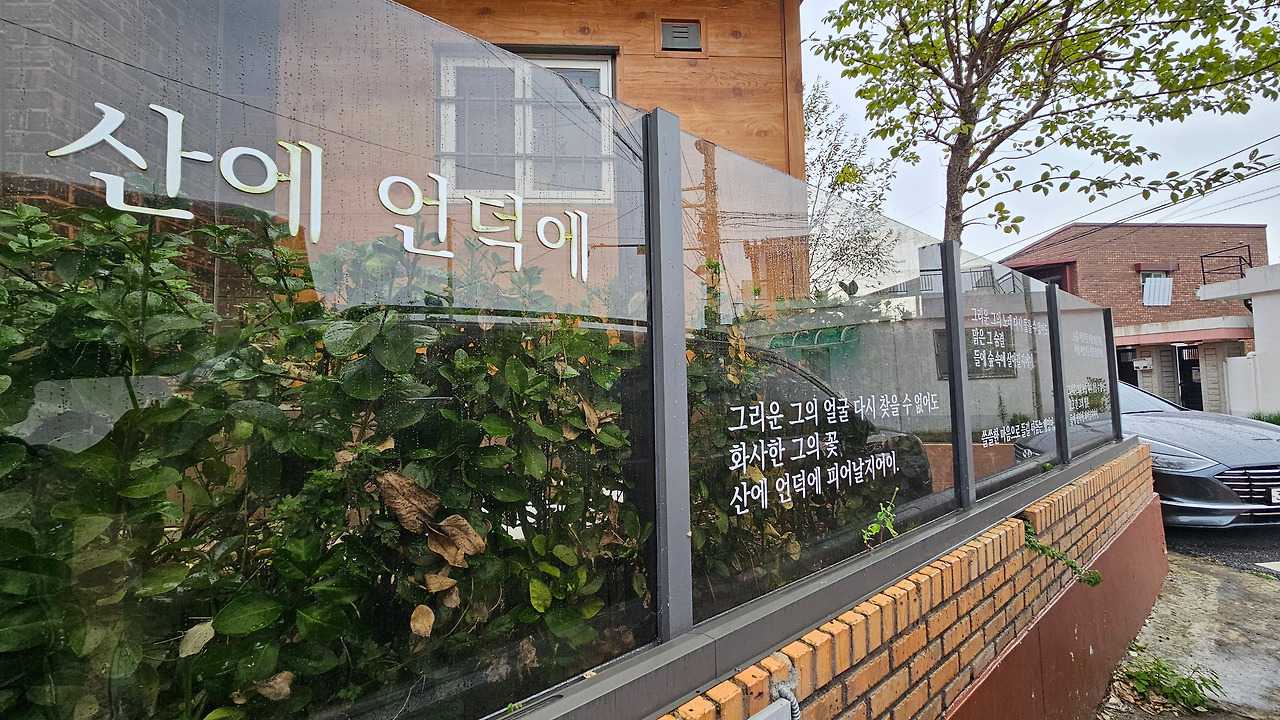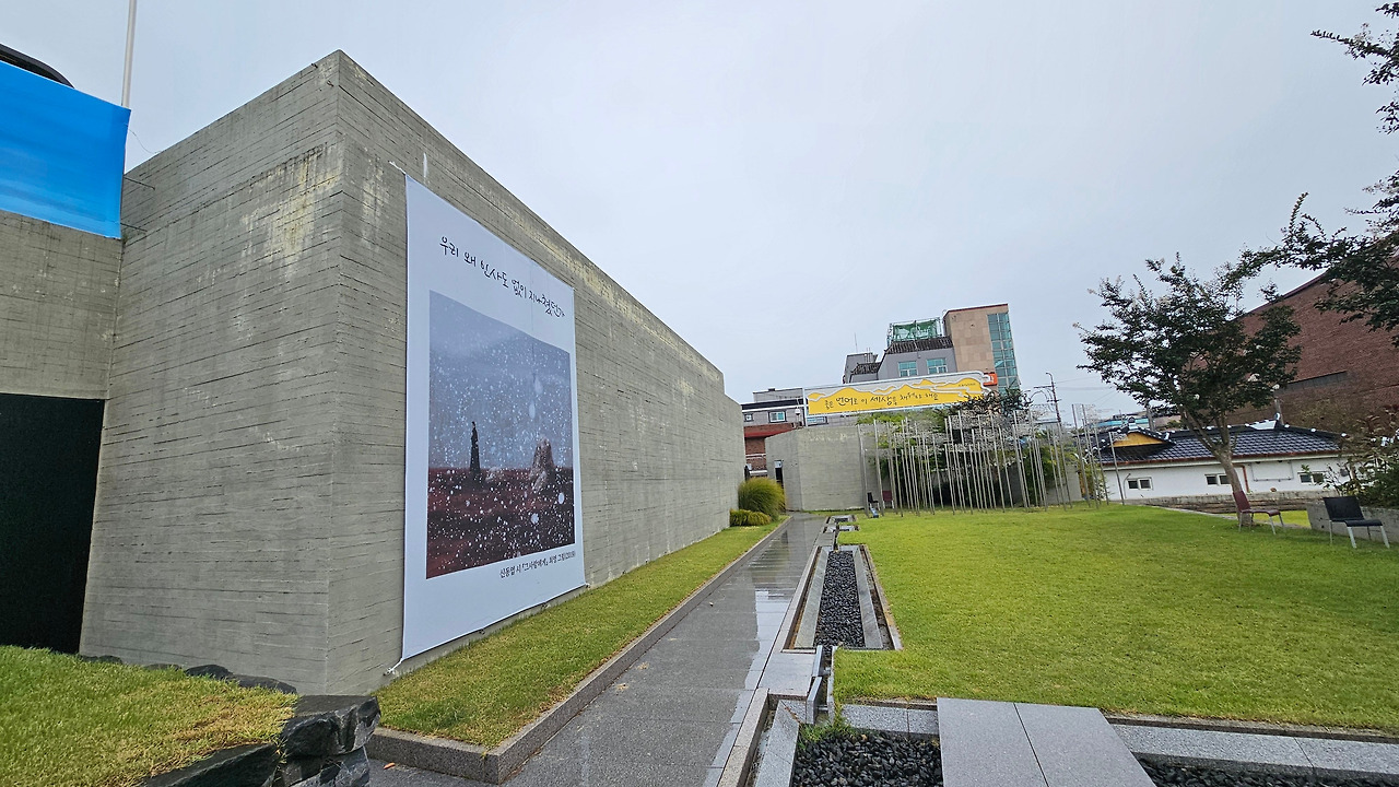 부여성당은 신동엽 시인 생가와 문학관의 친한 이웃이다. 신동엽 시인을 위하여 겉옷(담장)을 내어 주었다.
