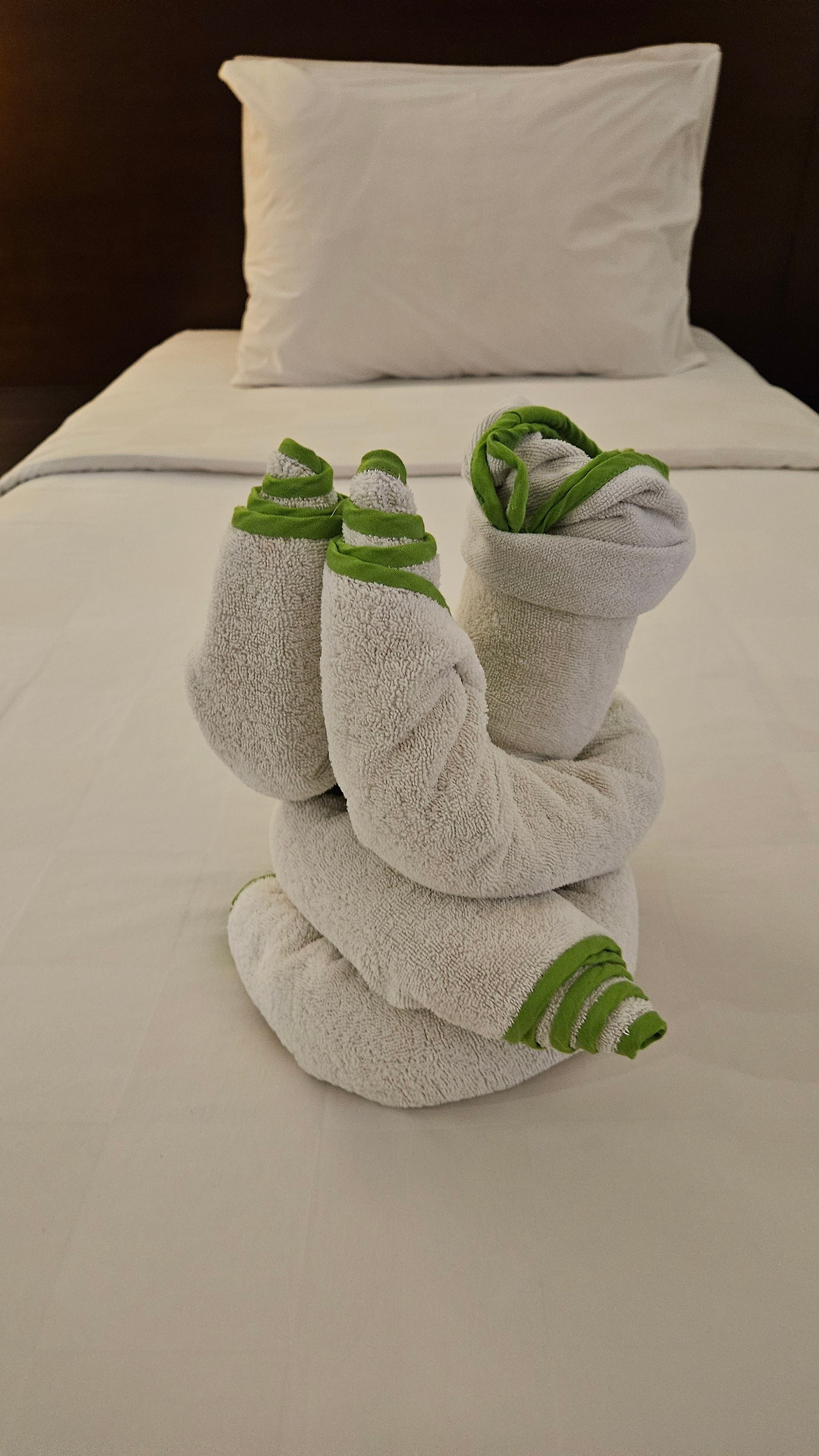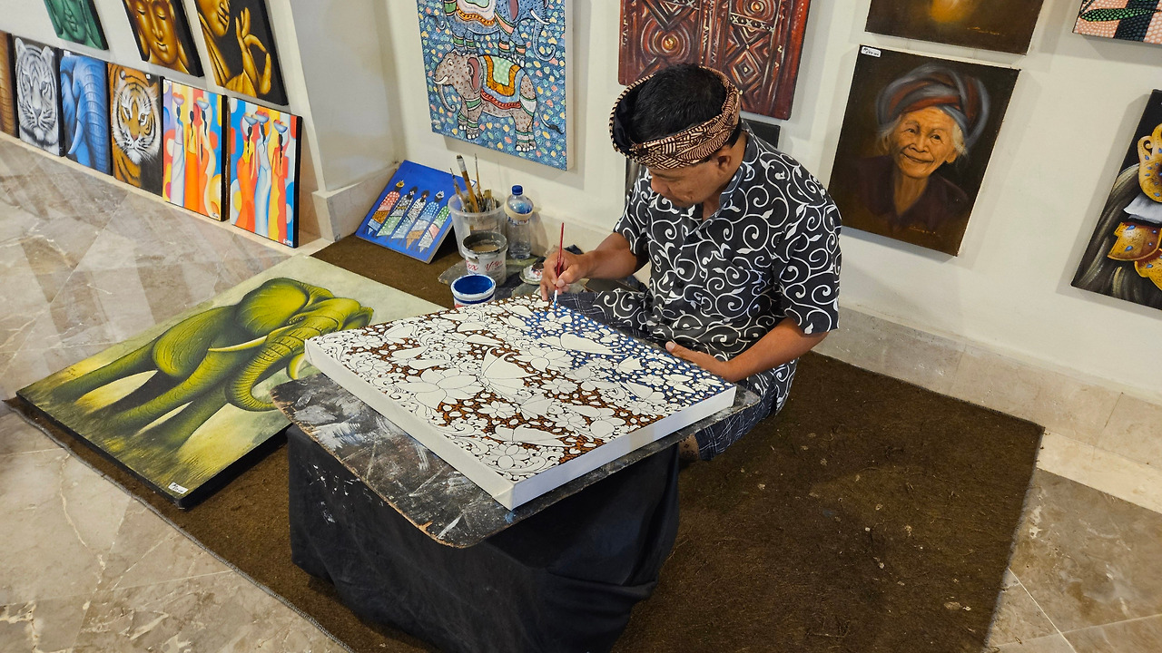 호텔(Prime Plaza Hotel, Sanur 위치)에 여장을 풀었다. 침대 위에 타월 2장으로 꼬아 만든 요가 상이 기다리고 있었다. 수영장, 강당, 식당(1층, 뷔페 식)등 공간이 넓고 이용하기에 불편함은 없었다. 화가 아저씨가 전시실 바닥에 앉아 직접 그림을 그리고 있었다. 그림 그리기에 집중 몰두하는 모습이 보기에 좋았다. 큰 벽면을 가득 채운 그의 다양한 그림들 앞에서 옆지기는 많은 관심을 보였다. 사누르 비치와 인근 지역 시장과 근처 상점가를 둘러보았다. 바다에서 서핑하기 좋은 환경인데, 12월에 방문하여 우기(11월~3월) 철이라 비를 맞아가며 서핑하는 사람은 없었다.