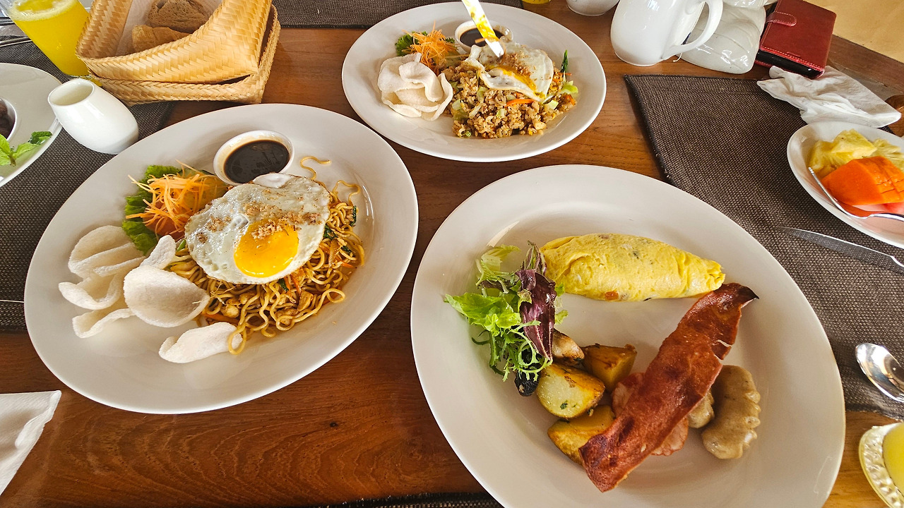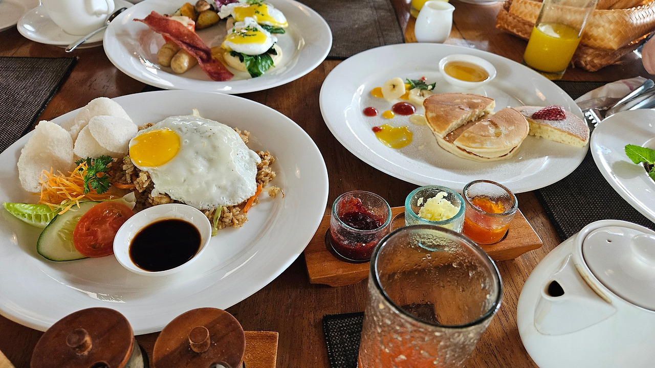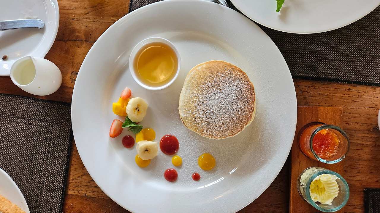 식사 후 우붓 왕궁으로 이동하였다. 여러 메뉴 중 꼬맹이는 핫케이크를 좋아했다.
