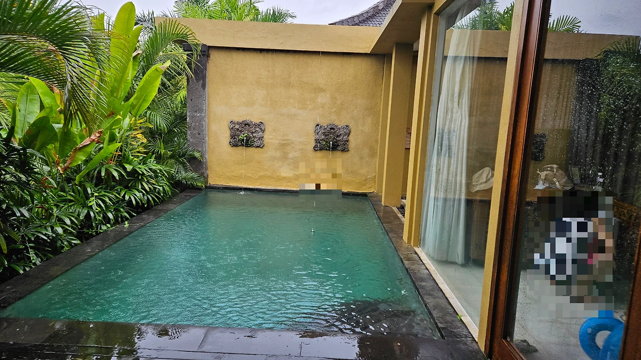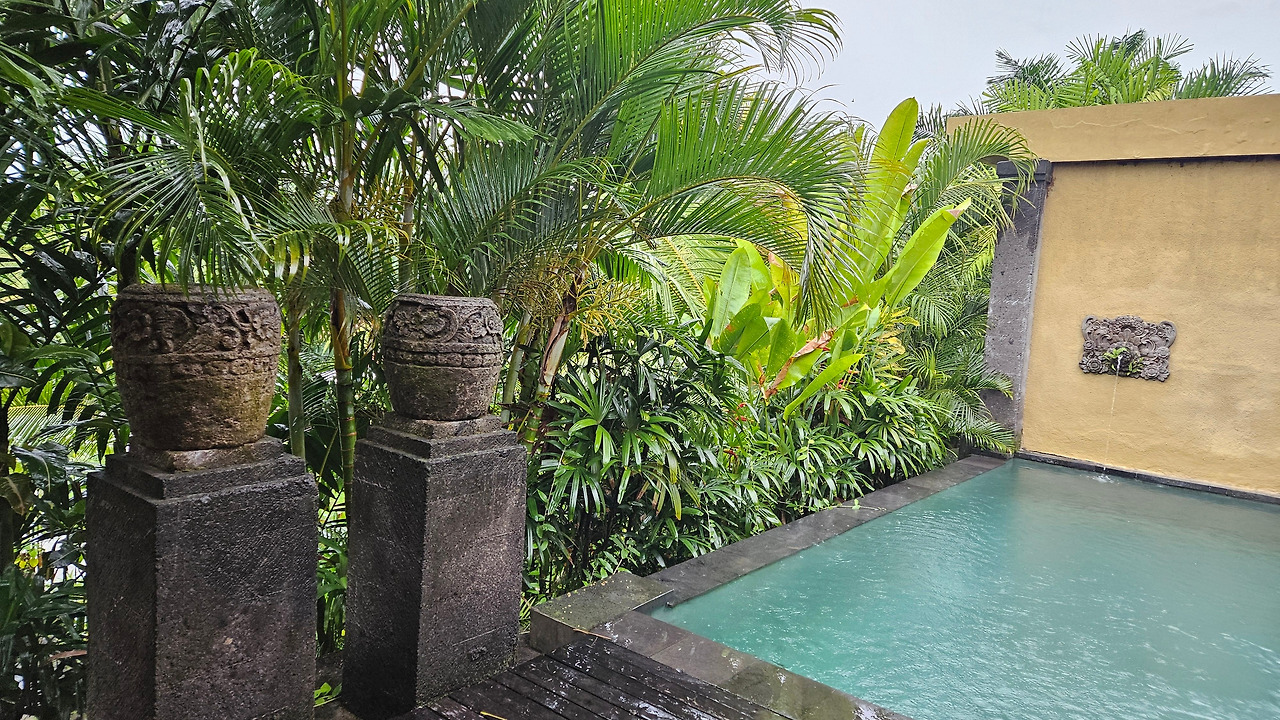 오전 12시 체크아웃. 우붓(Ubud) 숙소 The Sankara Suites Villas 체크인. 빌라 밖 논 모심기. 숙소의 노란 꽃송이(플루메리아)와 옥내 수영장과 야경 감상