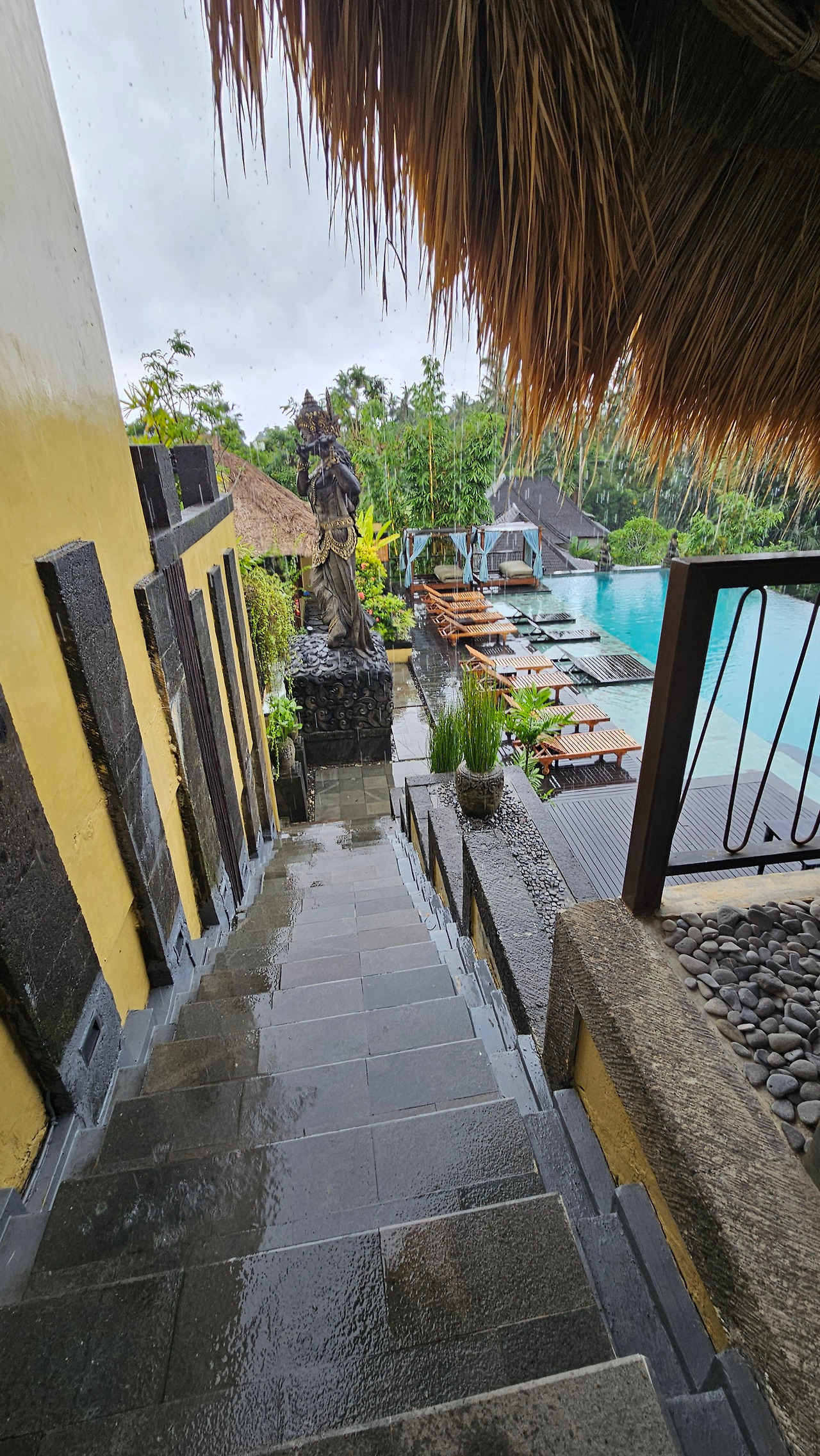 유명한 관광지로는 19세기에 세워진 우붓 왕궁, 왕궁 옆의 우붓 전통시장과 카페를 둘러보았다. 아쉽게도 우붓 왕궁(푸리 사렌 우붓)을 둘러보고 난 후 비가 너무 많이 와서 몽키 포리스트 관광은 포기해야 했다. 왕궁 근처의 카페에서 시간을 보내고 빌라로 돌아왔다. 특히 꼬맹이의 컨디션이 좋지 않아 어쩔 수 없이 회군해야 했다. 다음날 한국 관광객 두 분이 몽키 포리스트 관광 중에 강풍으로 나무가 쓰러져, 큰 변을 당했다는 놀라운 뉴스를 접했다. 인생이 갑자기 끝나는 세상이다. 항상 마음의 준비를 단단히 해야 한다. 그 순간까지 즐겁고 건강하게 살도록 노력해야 한다.