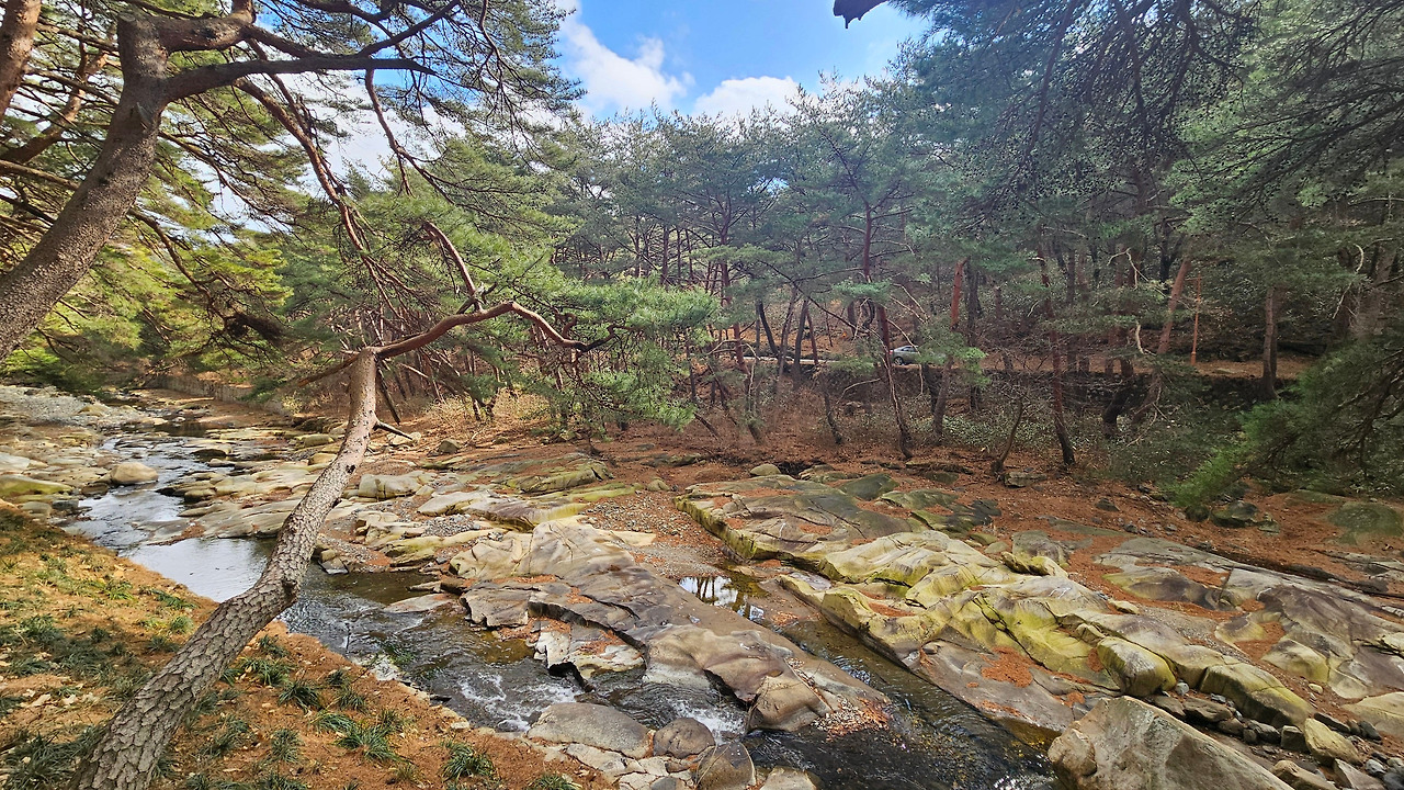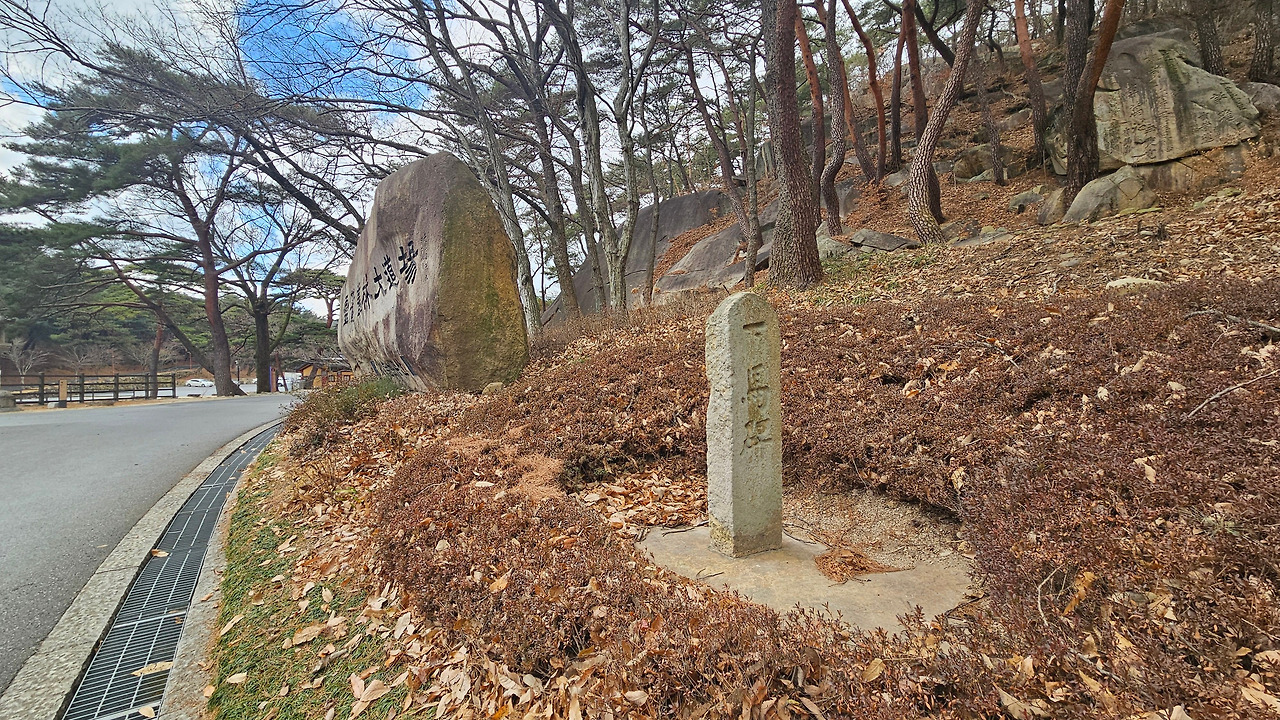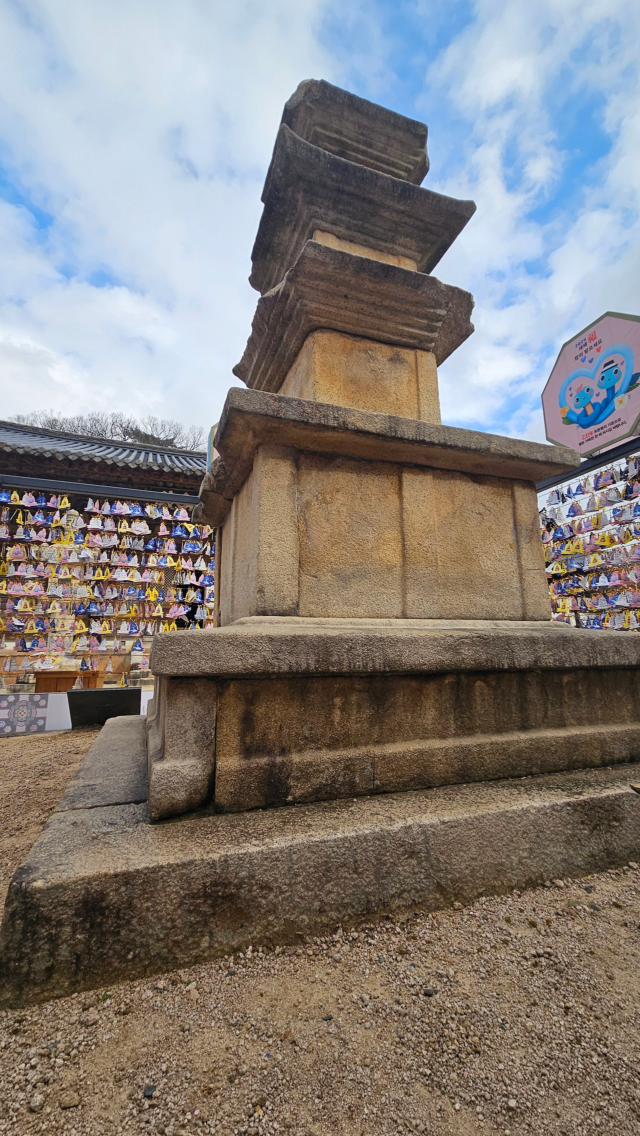 또 어떤 행사가 방금 끝났는지, 대웅전 금강계단 현판 앞마당에서 10여 명의 불자들과 스님들이 함께 불이문 방향으로 빠른 걸음으로 이동하고 있었다. 그 와중에 한 스님에게 팸플릿에 나와 있는 호혈석의 위치를 여쭈어 보았다. 손수 극락보전 측면에 있는 호혈석까지 직접 안내해 주셨다.