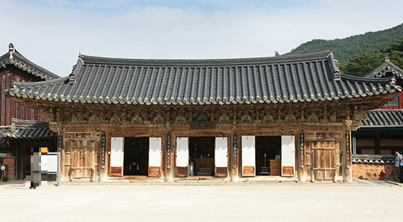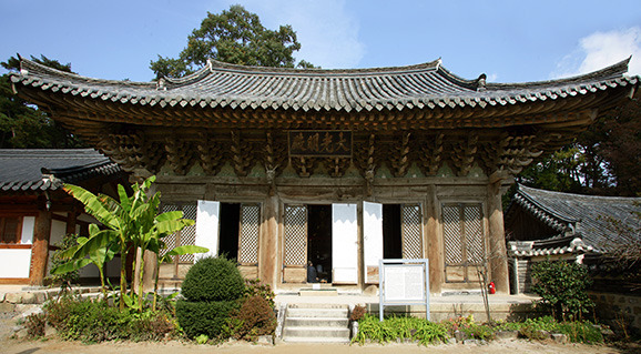 대웅전 바로 앞에 정면 3칸, 특면 3칸의 주심포식(柱心包式) 맞배집으로 동향(東向)하여 있다. 16 나한을 봉안한 법당을 나한전(羅漢殿), 응진전(應眞殿), 또는 십육 성전(十六聖殿)이라고도 하나 모두 같은 의미이다. 중앙에 석가여래좌상과 좌우에 미륵보살과 제화갈라보살이 봉안되어 있다.