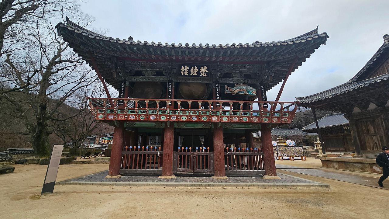 범종각은 천왕문(天王門) 바로 남쪽에 있다. 2층 누각 건물이다. 지붕은 팔작누각형(八作樓閣形)이며 내부 상하층에는 범종(梵鐘), 홍고(弘鼓), 목어(木魚), 운판(雲板) 등 사물(四物)이 있다. 범(梵)은 청정하다 또는 숙정(淑淨)하다는 뜻이다.