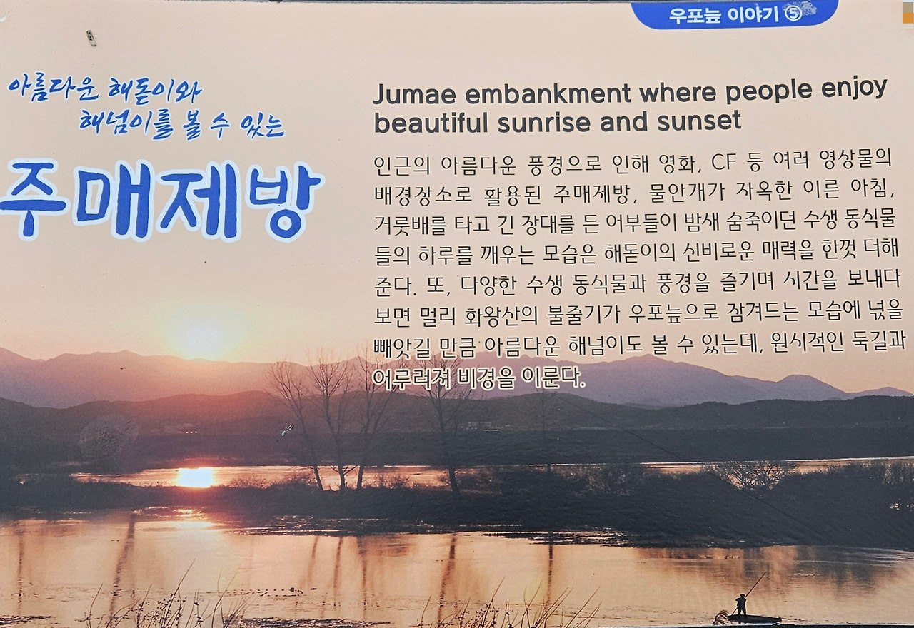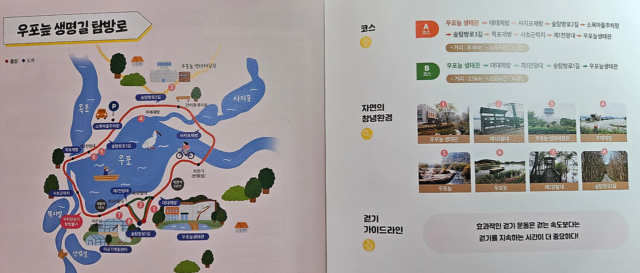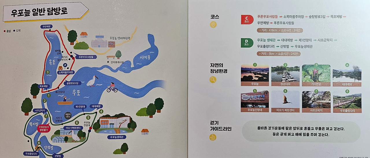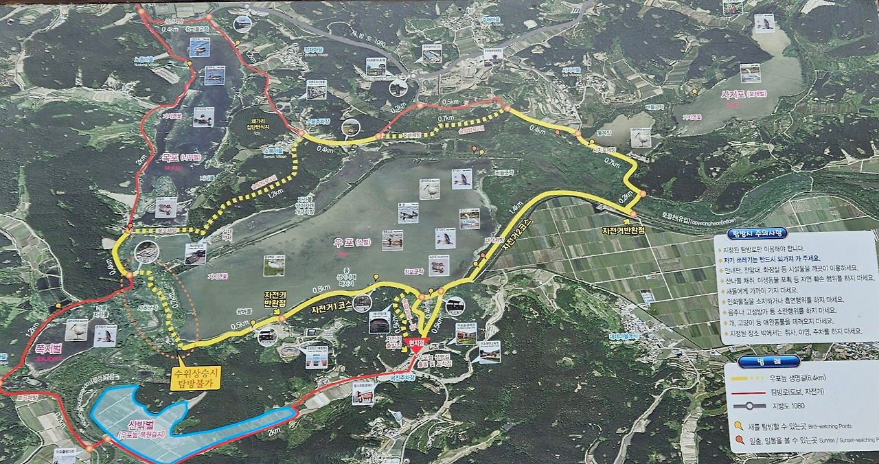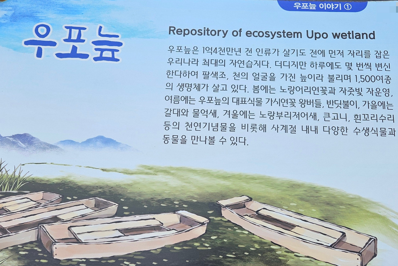당초 자전거를 타고 우포늪 일주하는 계획을 가지고 있었다. 그런데, 우포늪 관광 안내소에 들러 여러 종류의 팸플릿을 받고, 안내하시는 분에게 자전거 대여소 위치를 물어보니, 굳이 자전거를 탈 필요가 없다며, 약 10일 전에 조류 독감으로 우포늪 탐방로 출입을 제한한다는 공고가 났다고 했다. 다행히 우포늪 입구 안내소에서 대대제방 종료지점까지(약 2km)는 탐방로 출입이 가능하다고 했다. (2025.01.15일부~ 상황 종료 시까지) 전 구간 탐방을 위하여, 하루빨리 조류 독감이 물러 났으면 좋겠다. 탐방 못한 나머지 구간의 정보를 팸플릿과 안내 표지판 등을 통하여 최대한 긁어 왔다.