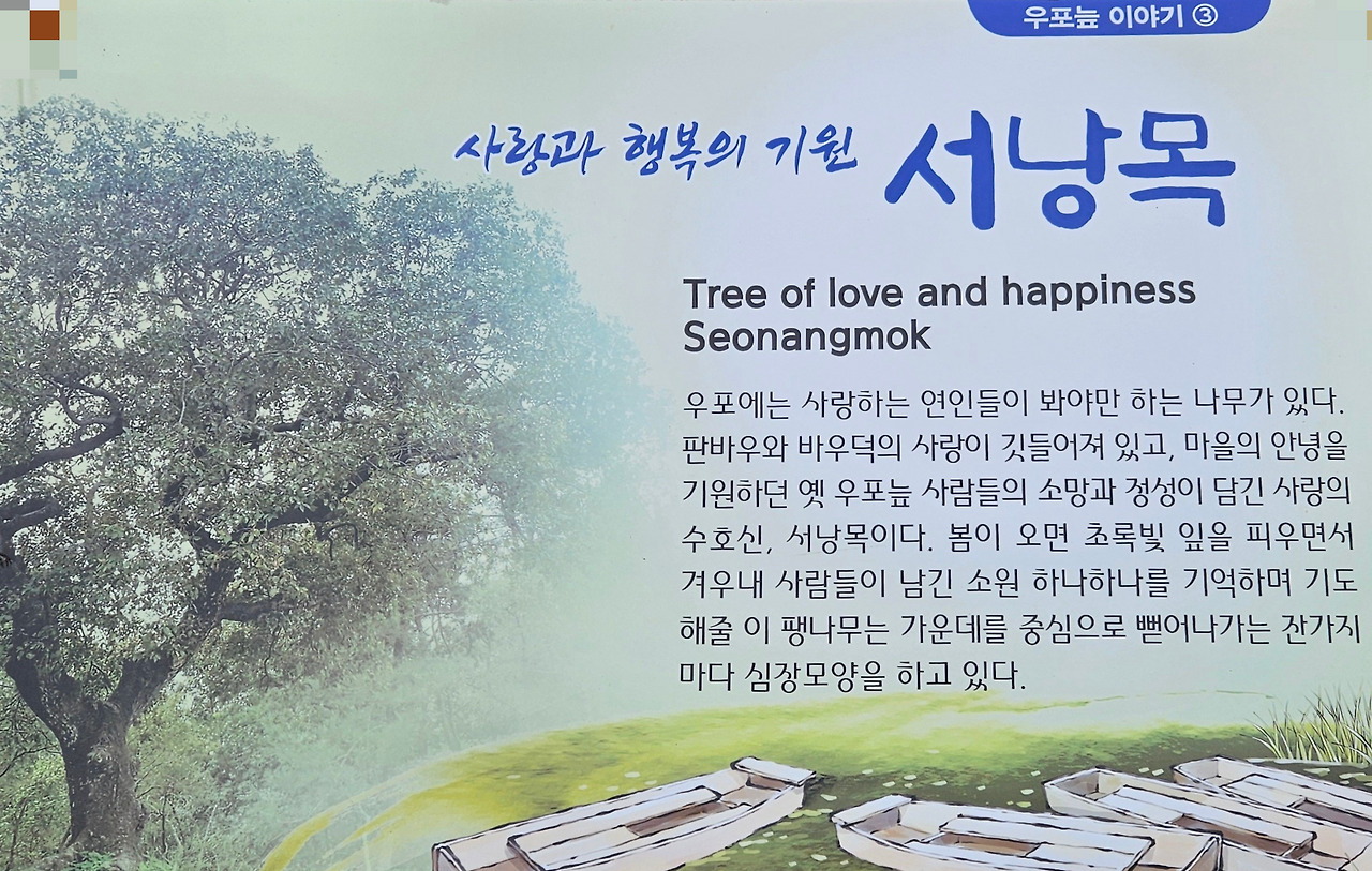 판바우와 바우덕의 사랑이 깃든 서낭목에 기도하면, 소원이 이루어진다고 한다. 잔가지들이 심장 하트 모양을 하고 있다.