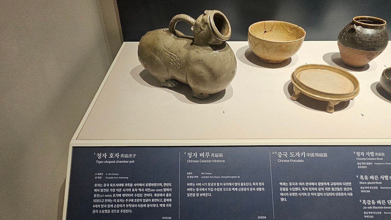 전시실에는 재미있는 모양의 그릇도 보인다. 남성이 사용한 요강이다. 호랑이 모습을 해학적으로 표현했다. 남성과 여성 요강의 형태가 다르다. 기발하면서도 여유가 있다.