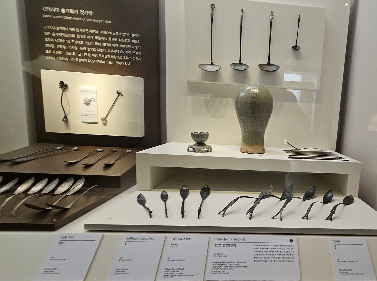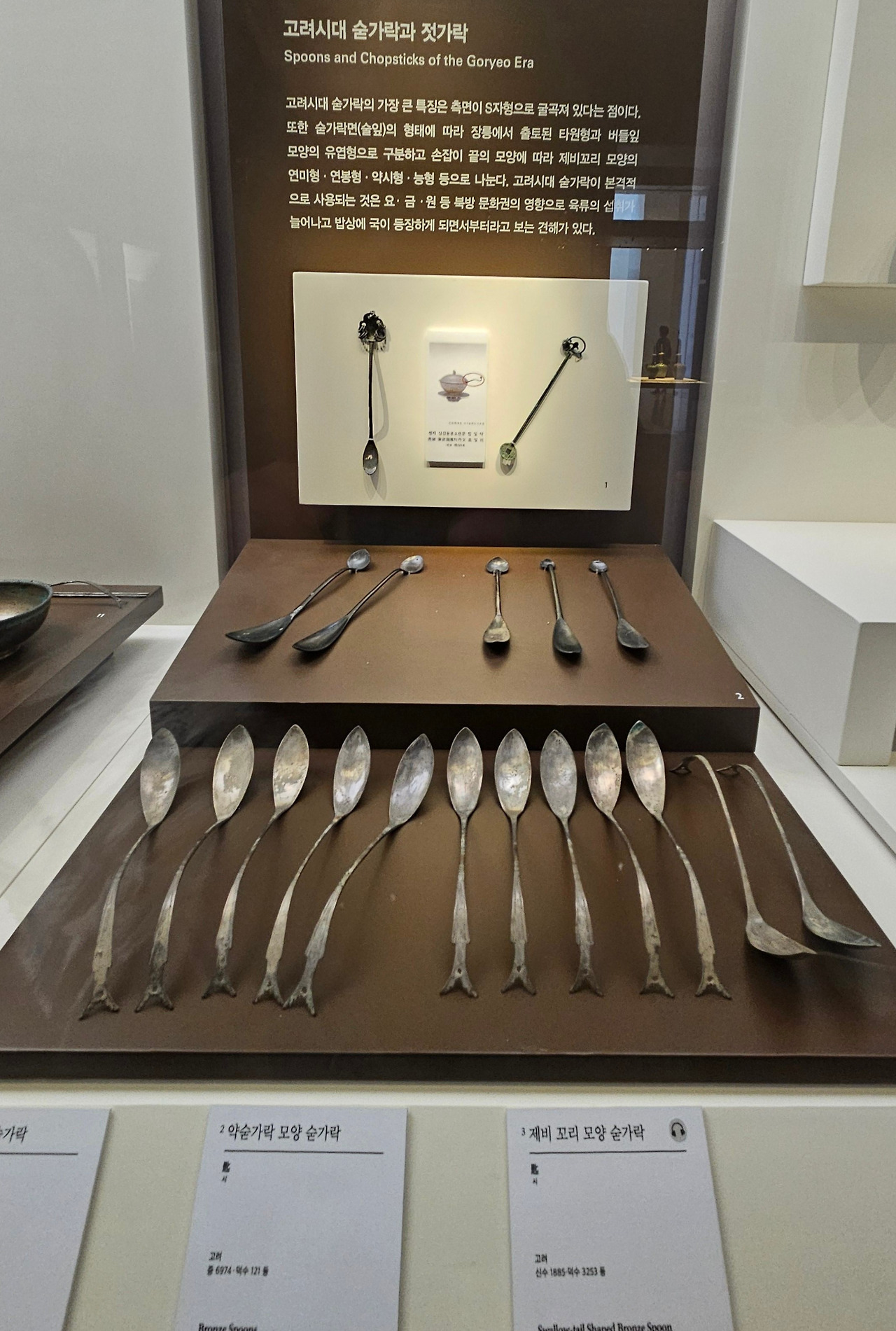 고려시대 숟가락의 큰 특징은 측면이 S자로 굴곡져 있다. 숟가락면(술잎)은 타원형과 버들잎 모양의 유엽형으로 구분한다. 손잡이 모양에 따라 제비꼬리 모양의 연미형 연봉형 약시형 능형 등으로 나눈다. 숟가락이 본격적으로 사용된 시기는 요 금 원 등 북방의 영향으로 육류 섭취가 늘어나고, 국이 등장하면서부터이다.