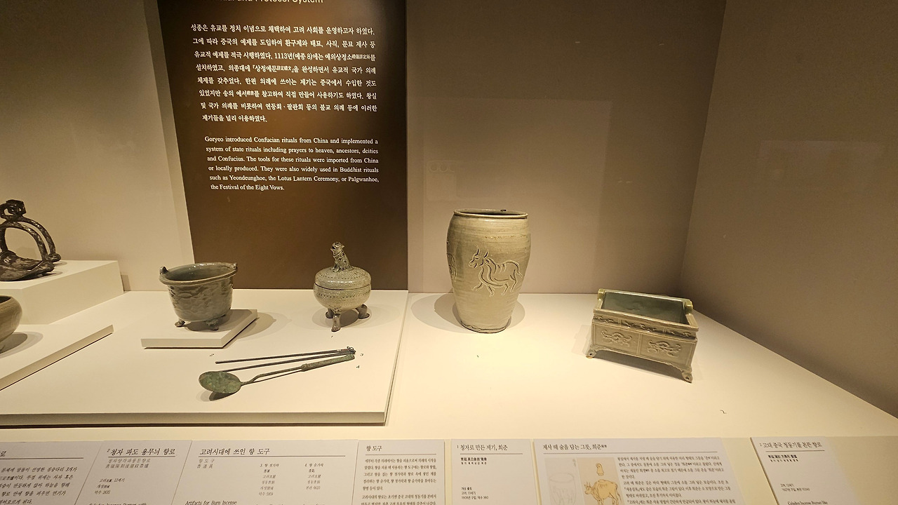 성종은 유교를 정치 이념으로 채택하였다. 중국예제를 도입하여 환구제와 태묘 사직 문묘 제사를 시행하였다. 제기는 중국에서 수입하거나 송의 예서를 참고하여 직접 만들었다. 왕실 국가 의례, 연등회 팔관회등 불교의례에 이러한 제기들을 사용하였다.