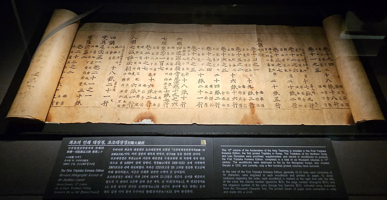 재조대장경은 몽골침입을 부처의 힘으로 물리치고자 국가적 역량으로 판각하였다고 전해지는 한역 대장경 가운데 가장 정확하고, 예술적 완성도가 높아, 2007년 유네스코 세계기록유산으로 등재되었다. 경남 합천 해인사 경내에 있다.