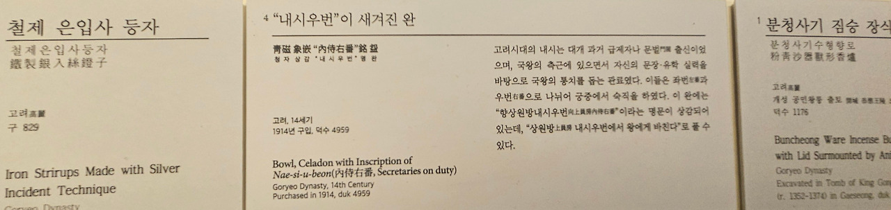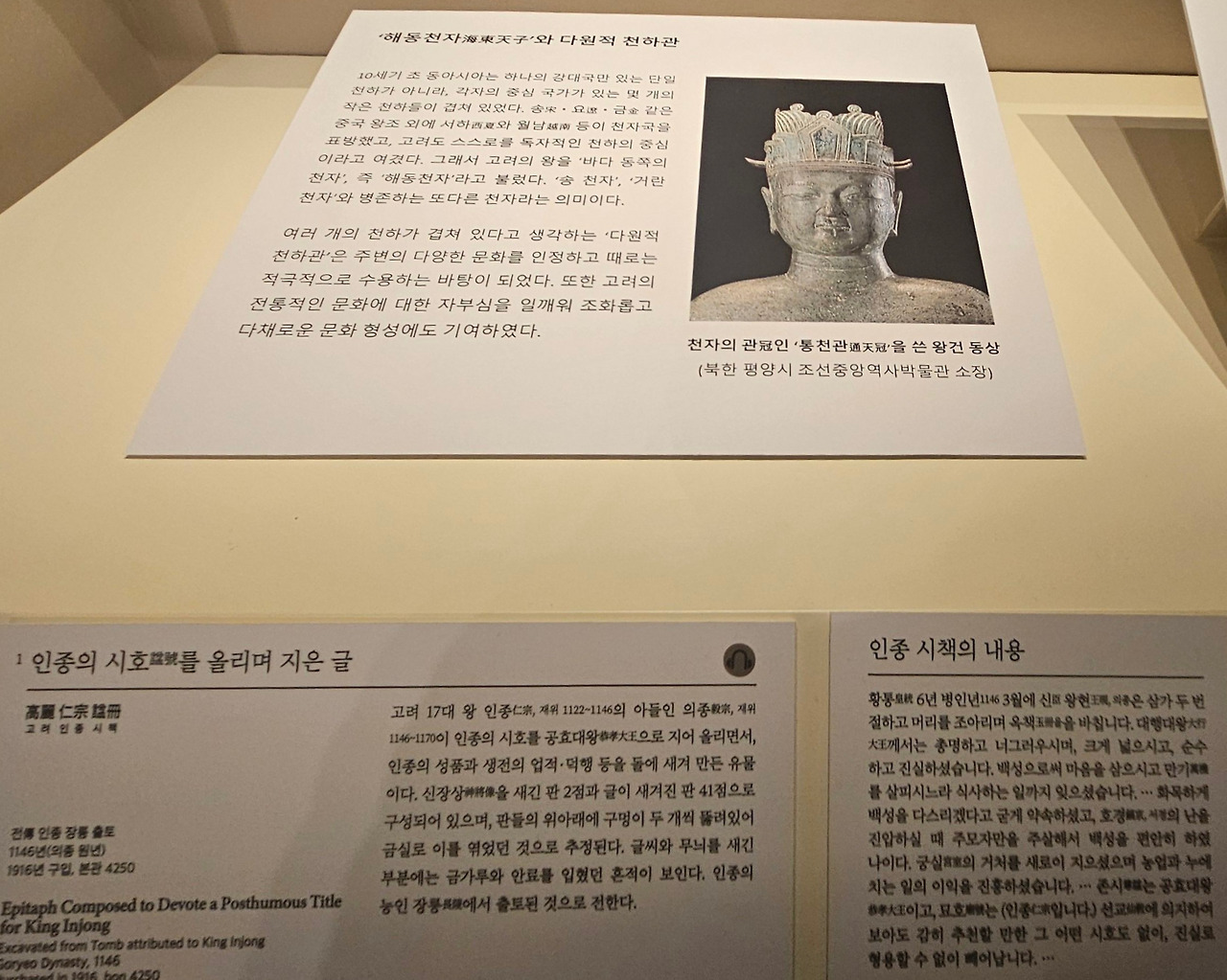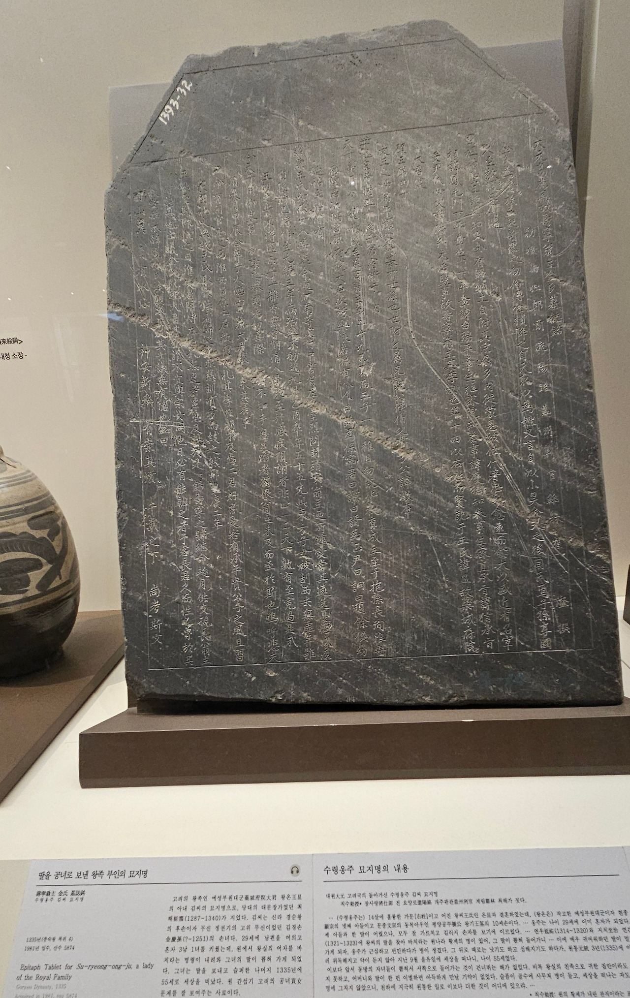 (전문 지식이 부족하여, 아래 고려 유물에 대한 대부분의 설명은 국립중앙박물관내의 설명판에서 인용하였음을 미리 밝힌다. 처음 본 문화재와 유물들도 많았고, 여성의 지위에 대하여 굉장히 진취적인 이해를 한 고려 시대 상황에 놀랐다. 특히 원나라 조정에서 왕실의 여자를 바치라는 요구에, 자신의 외동딸이 공녀에 뽑혀, 다시는 못 볼 먼 타국으로 보내야만 했던 한 많은 어머니(수령옹주)의 묘지명에 충격을 받았다. 국립중앙박물관을 처음 방문하실 예정인 분들에게는 미리 예습하시는 입장에서 읽어 주시면 좋겠다.)