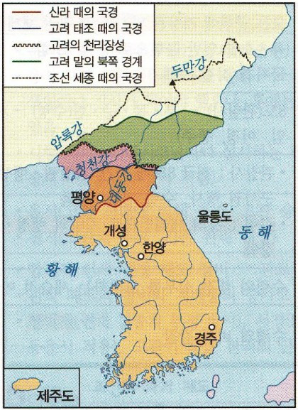 고려 말의 북쪽 경계(최대 영토) : 초록색 선