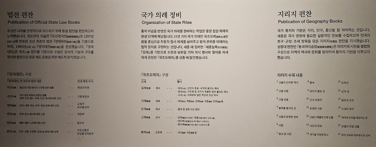 정도전의 조선경국전과 조선 최초의 법전인 경제육전을 기본으로, 1485년 경국대전을 완성했다.