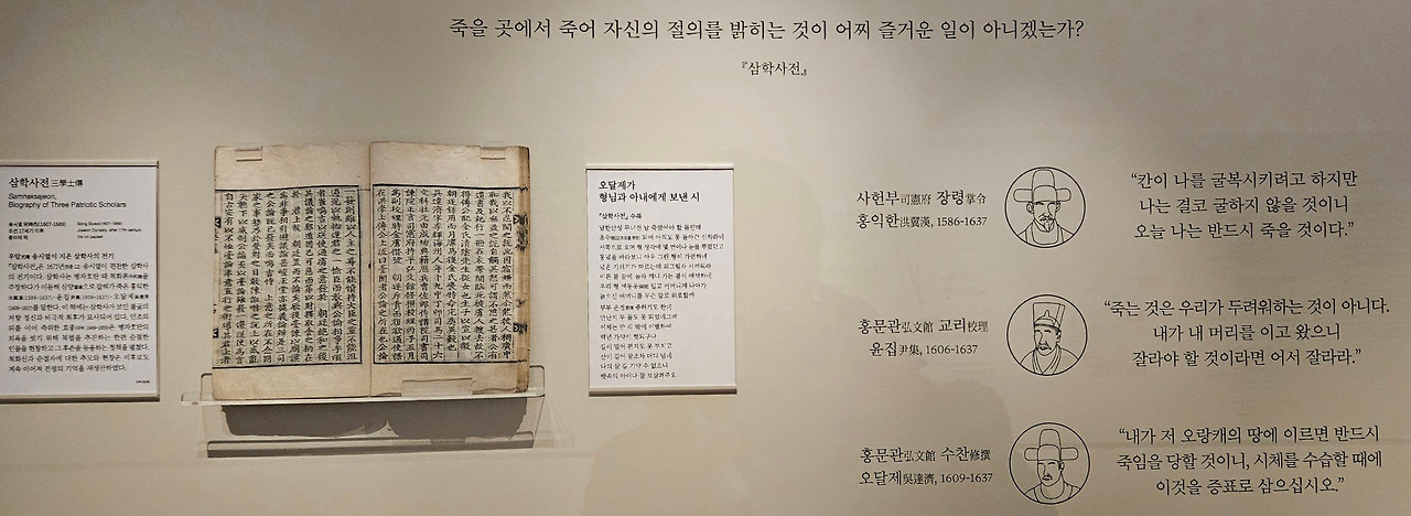 전쟁의 상처는 언제나 깊고 가슴 쓰리다. 병자호란 삼학사 홍익한 선생의 딸 묘지명 이야기와 삼학사 오달제 선생의 시는 조선시대 백성들의 삶을 그대로 보여 준다.