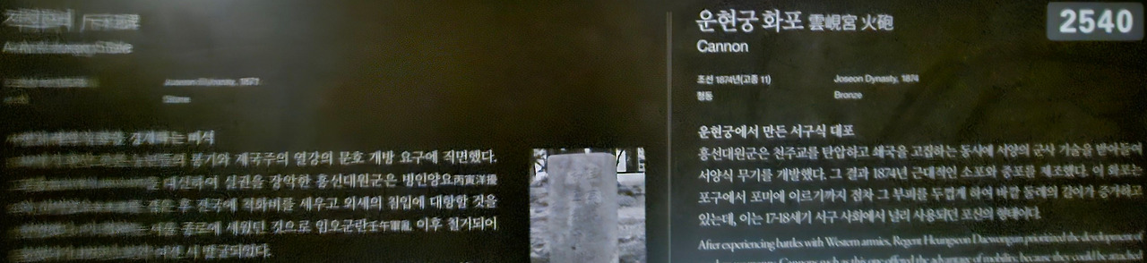 운현궁에서 만든 서구식 화포다. 1874년 근대적인 소포와 포구에서 포미까지 점차 부피를 두껍게 만들었다.