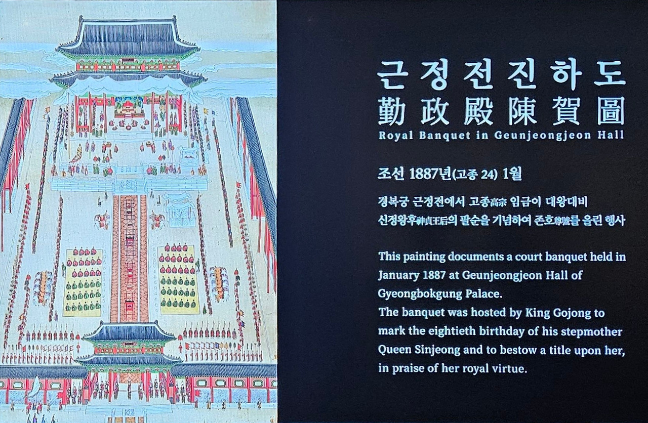 1887년 1월 고종이 대왕대비 신전왕후의 팔순을 기념하여 존호를 올린 행사 때의 그림이다.