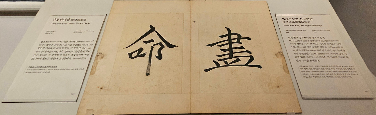 영조의 아들 사도세자가 10세 무렵 쓴 글씨다. 총명함에 영조가 만족하여 이를 모사하여 첩으로 만들어 신하들에게 나누어 주었다. 한때는 그도 사랑을 받는 아들이었다.