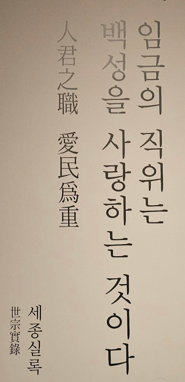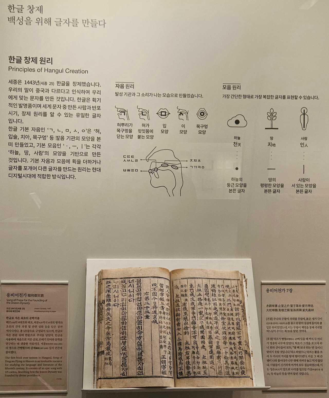 세종은 1443년(세종 25) 한글을 창제하였다. 획기적 발명품이며, 만든 사람과 반포시기 창제 원리를 알 수 있는 유일한 글자다. 백성을 위해 글자를 만들었다. 자음인 'ㄱ ㄴ ㅁ ㅅ ㅇ'은 혀 입술 치아 목구멍의 모양을 본떠 만들었다. 기본모음인 '. ㅡ ㅣ'는 각각 '하늘 땅 사람' 모양을 기반으로 만들었다.
