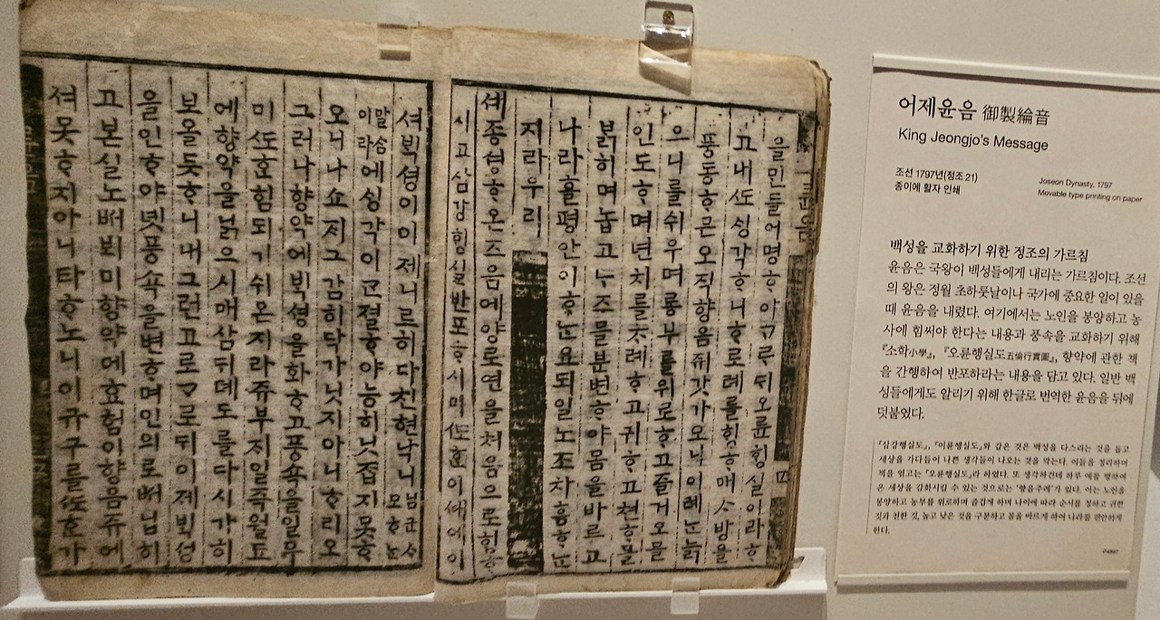 백성을 가르치는 바른 소리라는 의미다. 1443년에 만들어 1446년에 반포하였다. 불교와 유교 서적의 번역, 농사직설 같은 실용서, 내훈 같은 교화서등의 편찬에 활용되다.
