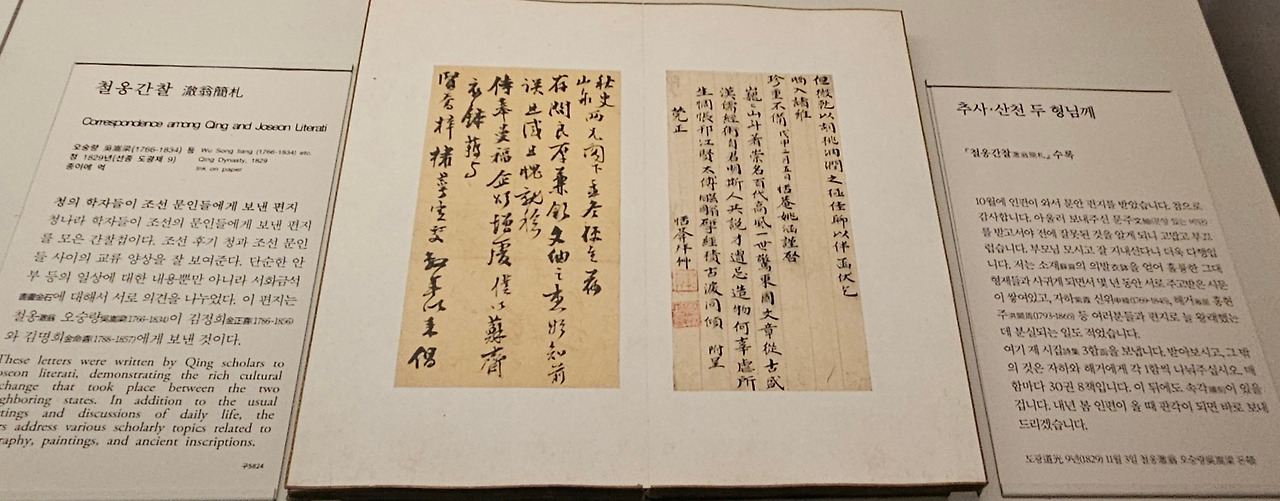 청의 학자들이 조선 문인들에게 보낸 편지를 모은 간찰첩이다. 일상 등 안부와 시화금석에 대해 의견을 나누었다. 아래 편지는 철옹 오숭량이 김정희와 김명희에게 보낸 것이다.