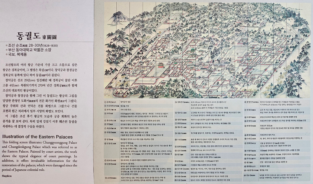 경복궁의 동쪽에 있어 동궐이라고 했다. 경복궁이 불탄 후 복원되기까지 약 270년간의 왕궁이었다. 바로 남쪽에 조선 왕들 제사를 지내는 장소인 종묘가 있다.