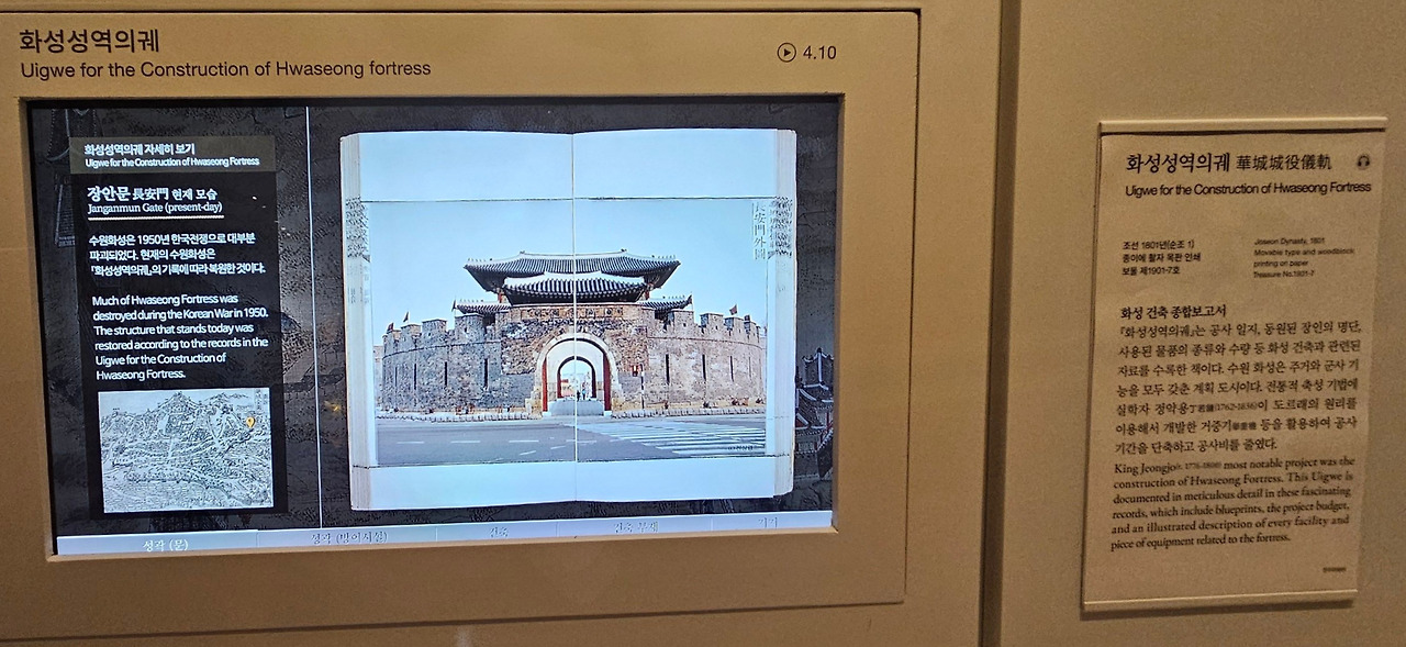 공사일지, 동원된 장인의 명단, 사용된 물품의 종류와 수량 등 화성 건축과 관련된 종합보고서다. 수원 화성은 주거와 군사 기능을 모두 갖추었다. 정약용이 도르래 원리를 이용 개발한 거중기 등을 활용하여 공사 기간을 단축하고 공사비를 줄였다.
