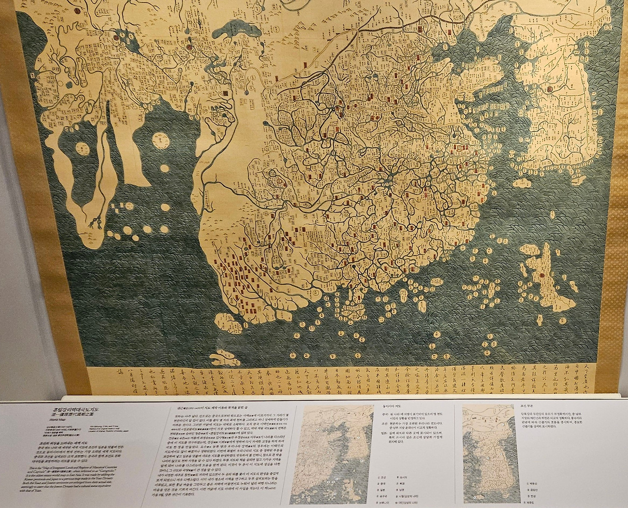 조선의 위상을 드러내는 세계 지도다. 동아시아에서 전하는 가장 오래된 지도다.