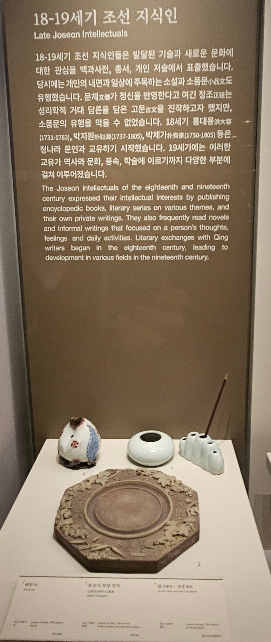발달된 기술과 새로운 문화에 대한 관심을 백과사전, 총서, 개인 저술에서 드러냈다. 개인의 내면과 일상을 소재로 한 소설과 소품문도 유행했다. 18세기 홍대용 박지원 박제가 등은 청나라 문인들과 교유했다. 19세기에는 역사와 문화 풍속 학술에까지 관심분야가 확장되었다.