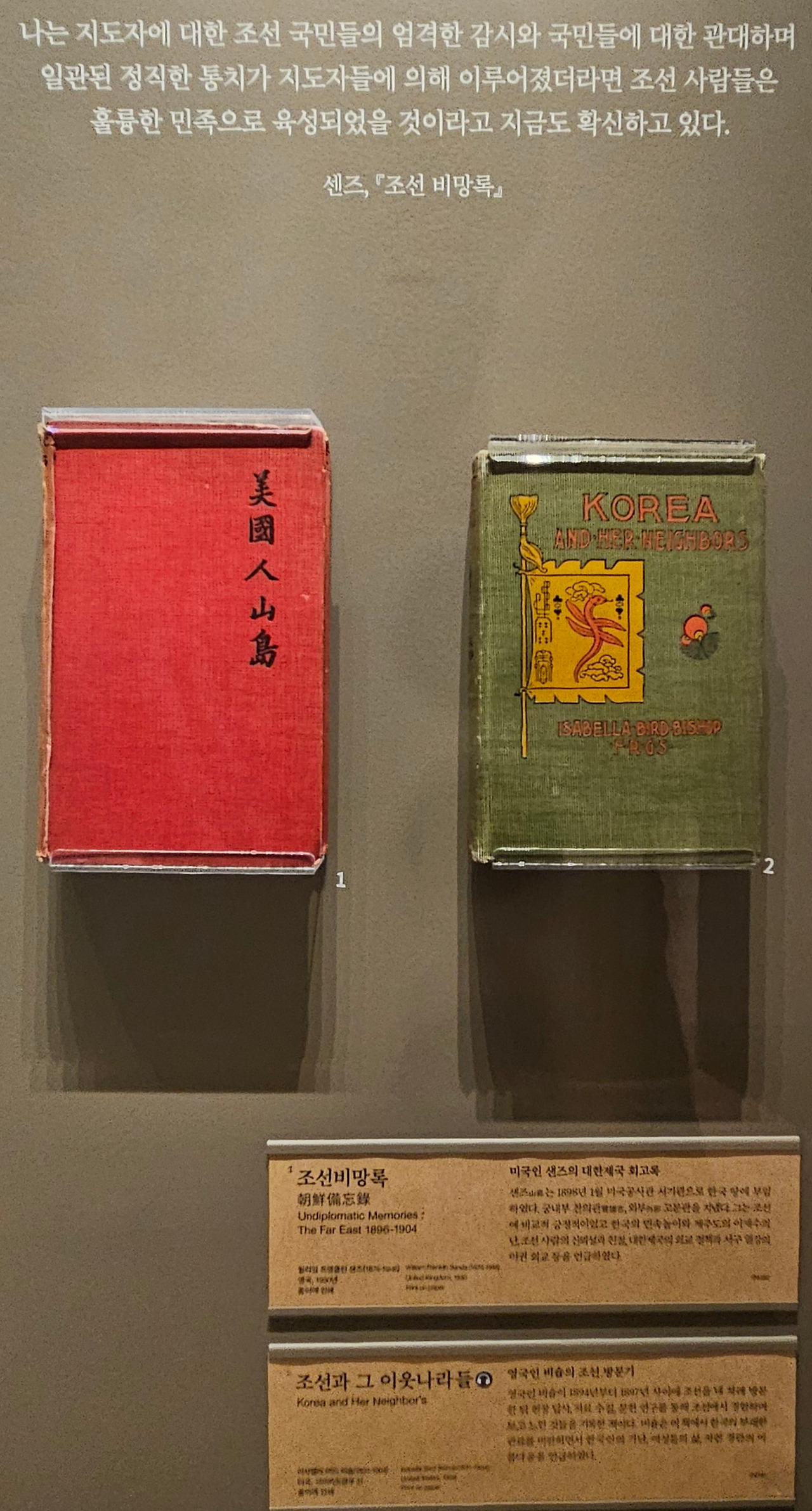 영국인 비숍의 조선 방문기다. 1894년~1897년 사이에 네 차례 방문하였다. 조선의 부패한 관료들을 비판하면서 가난, 여성들의 삶, 자연경관의 아름다움을 표현했다.