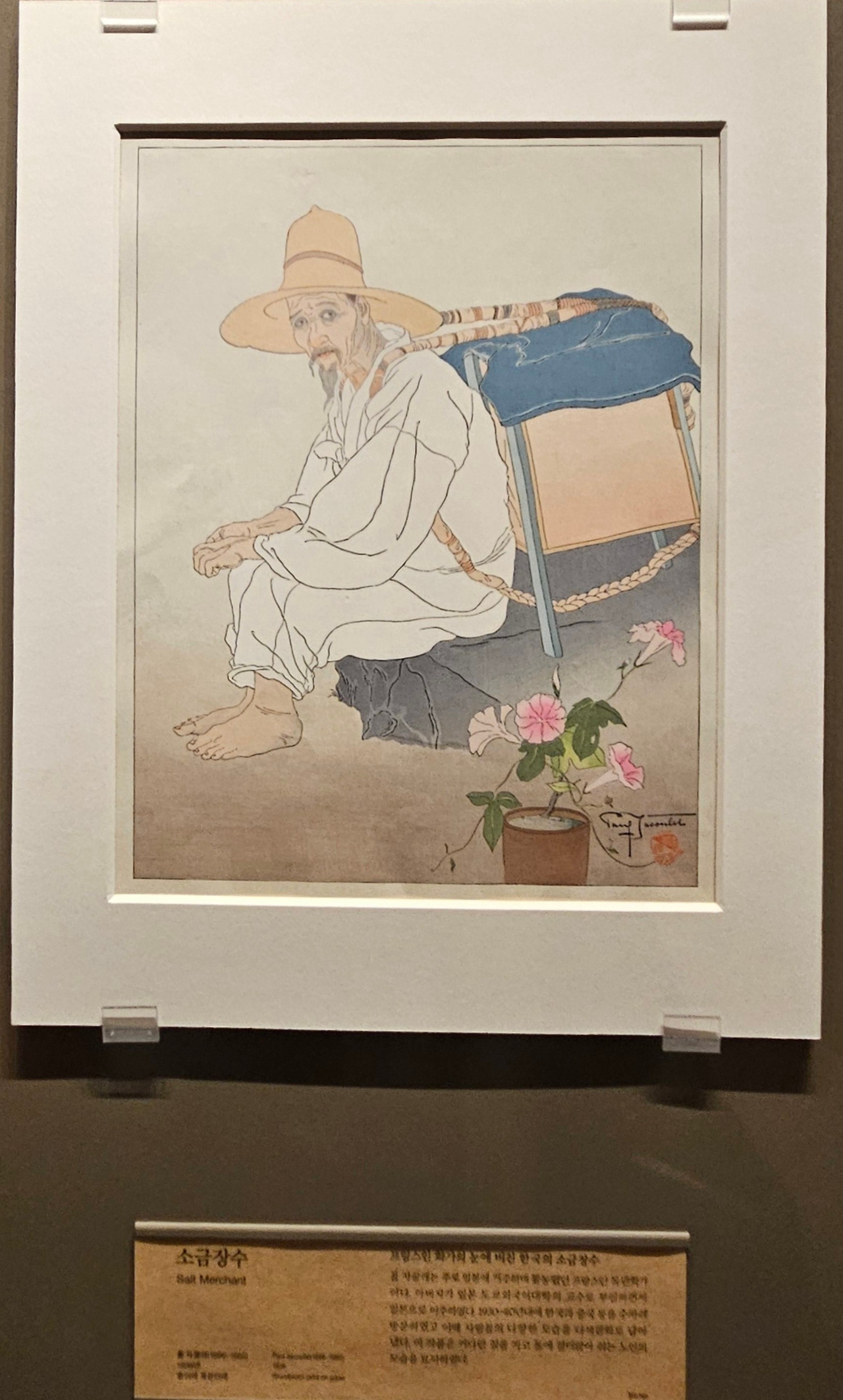프랑스 화가 폴자쿨레가 그렸다. 1930~40년대에 한국과 중국 등을 수차례 방문하였고 이때 사람들의 다양한 모습을 다색판화로 담아냈다. 커다란 짐을 지고 돌에 걸터앉아 있는 노인의 모습이다. 저물어 가는, 기울어 가는 안타까운 조선의 모습이다. 나의 모습이기도 하다.