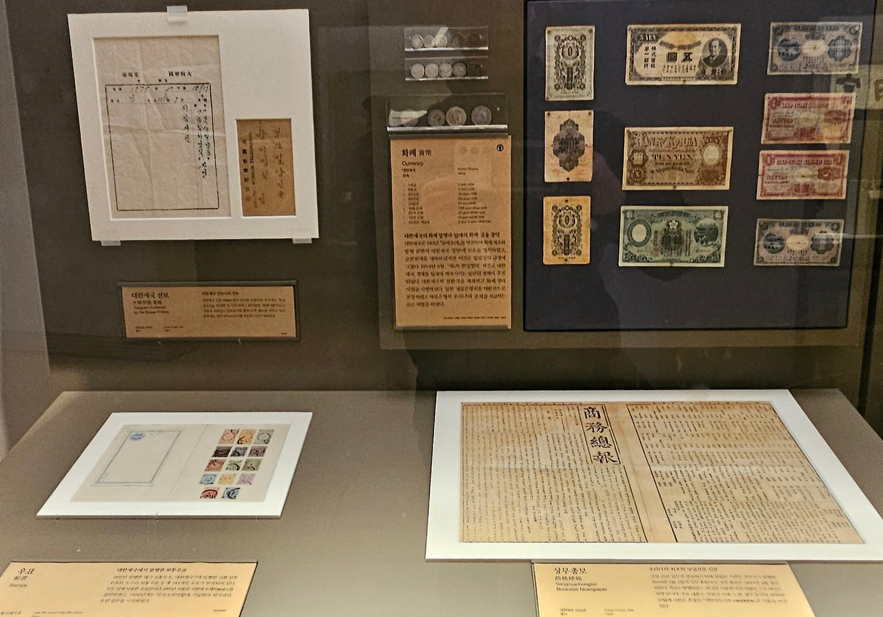 모두 실제 사용한 우표들이다. 1895년 서울과 지방의 우체사를 설치하였고, 1900년에는 만국우편연합에 가입하여 외국과의 우편업무를 시작하였다.