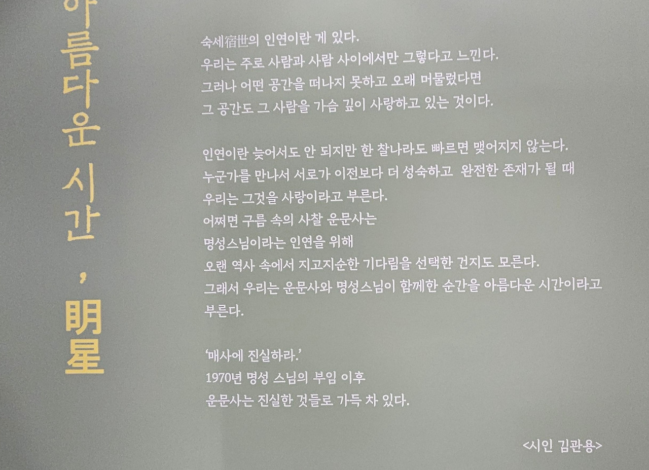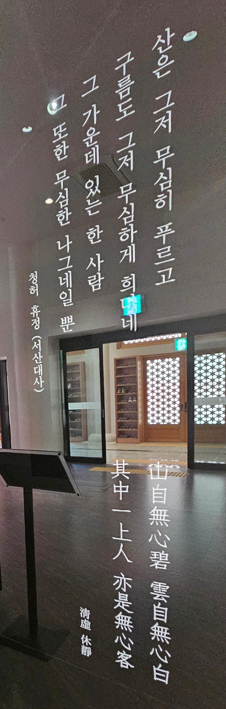 스님들도 모두 운문사 경내의 불이문 안에서 수행 중이셔서, 한 분도 뵙지 못했다. 다만, 운문사 역사문화관 1층에서 붓을 들고 한시를 짓고 계시는 명성 스님을, 사진으로만 뵙고 왔다.