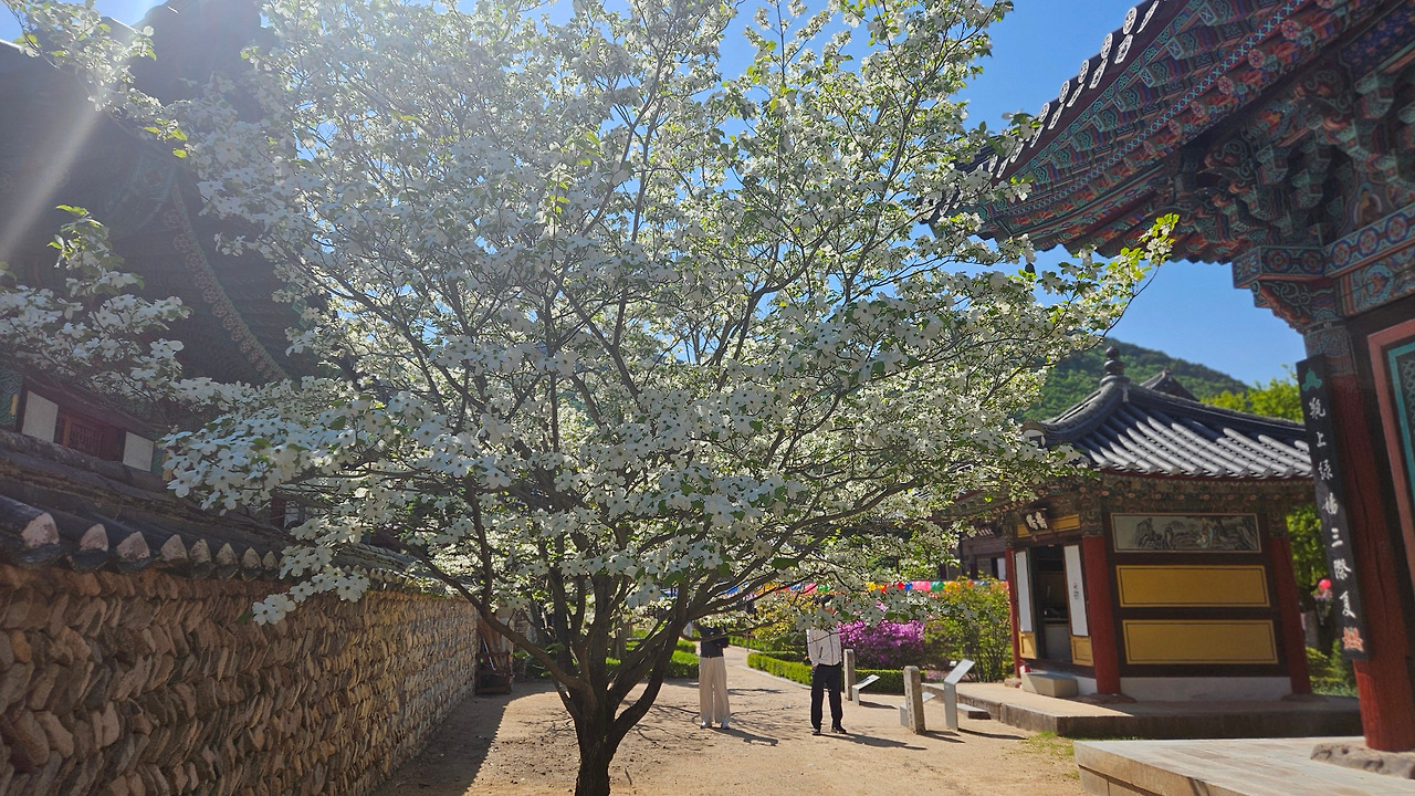 관음전 앞에 꽃산딸나무가 활짝 피었다.