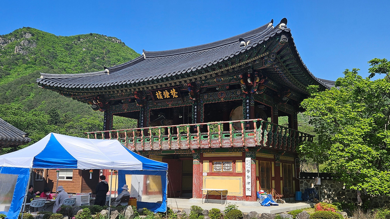 큰 법회시에 대웅전에 들어가지 못한 대중들이 대웅전을 향하여 법회에 참석할 수 있도록 만든 건물로, 200여 평의 넓은 공간을 누각으로 조성하였다.