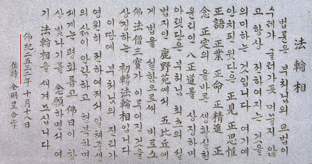 법륜은 부처님의 가르침이 수레가 굴러가듯 머물지 않고 항상 전하여지는 것을 의미한다.