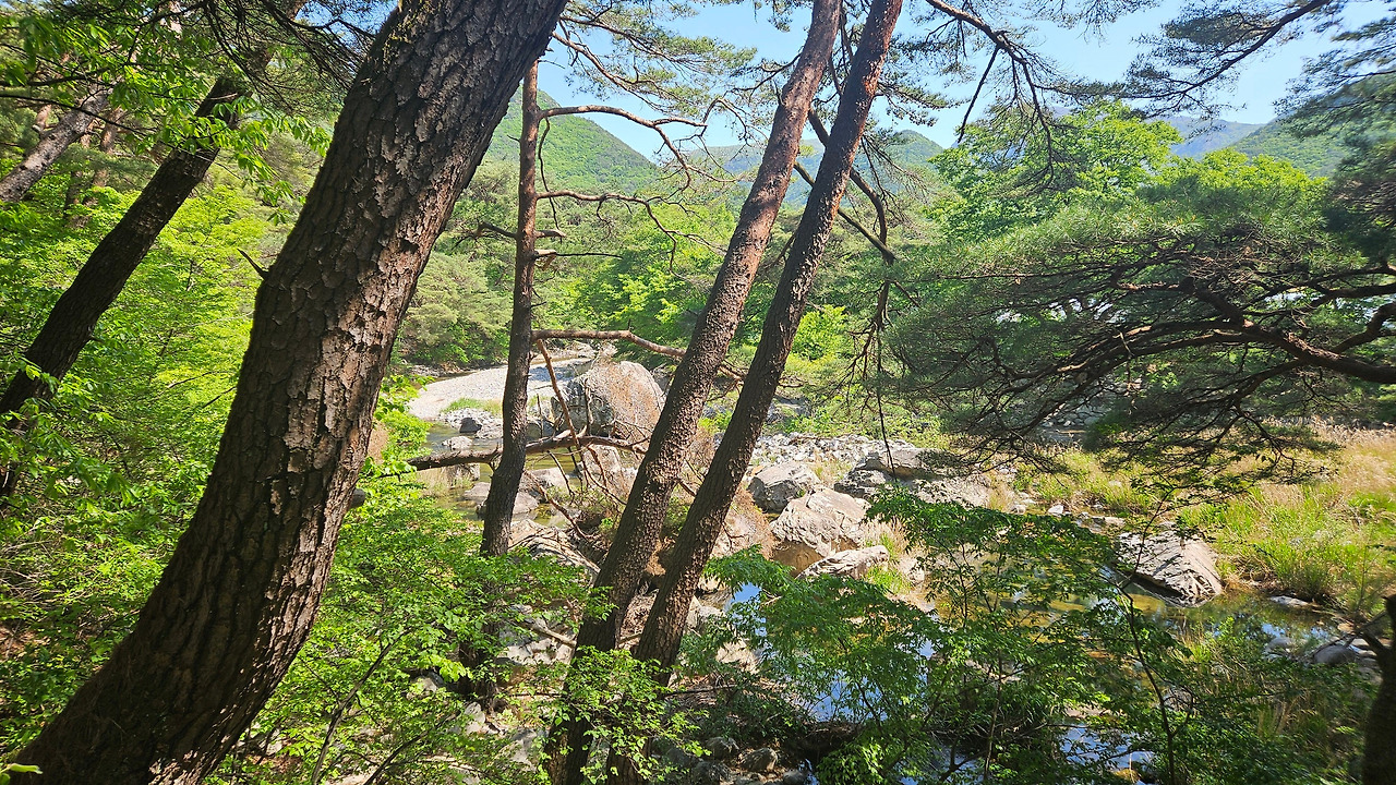 차창 밖 교통표지에 ‘운문댐‘ ’ 화랑정신 발상지’등이 눈에 들어왔다. 운문사는 비구니 스님들의 수행 공간이라는 곳쯤은 알고 있었다. 휑하니 넓은 주차장에 내렸다. 계곡을 흘러가는 맑은 냇물에 산이 비치니 물이 푸르다. 높은 산 정상에 바위가 띠를 두르고 있으니 장엄하기까지 하다. 게다가, 같이 버스에 동승해서 내린 고교생 젊은 남녀가 야유회 모임을 위하여 작전타임 준비하고 있으니, 삼박자(水, 山, 人)가 참 잘 어울린다.
