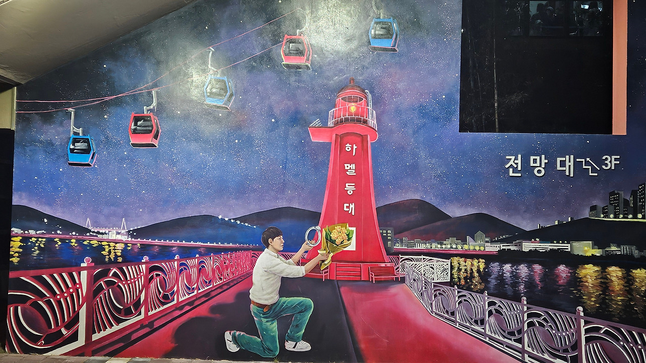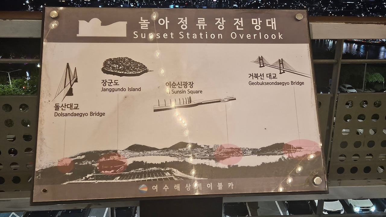 돌산공원에서도 워낙 외래 관광객과 방문 차량이 많아 주차하는데, 40분 이상 대기하며 애를 먹었다. 카페와 전망대 케이블카가 끊임없이 여수 밤바다를 아름답게 누비고 있었다. 이번에도 시간이 없어 하멜등대는 못 가봤다. 하멜의 슬픔이 나의 슬픔이다. 아쉬운 마음에 전망대에서 하멜등대 그림의 사진을 담아 왔다.
