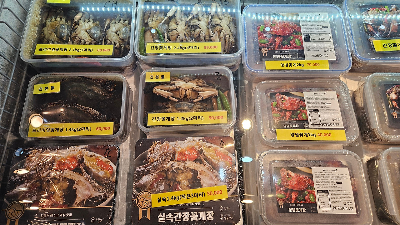 순천에서 여수로 이동하였다. 간장과 양념 꽃게장, 돌게장, 새우장, 전복장을 구경하였다. 2층에 대기실에서 기념사진을 찍었다.