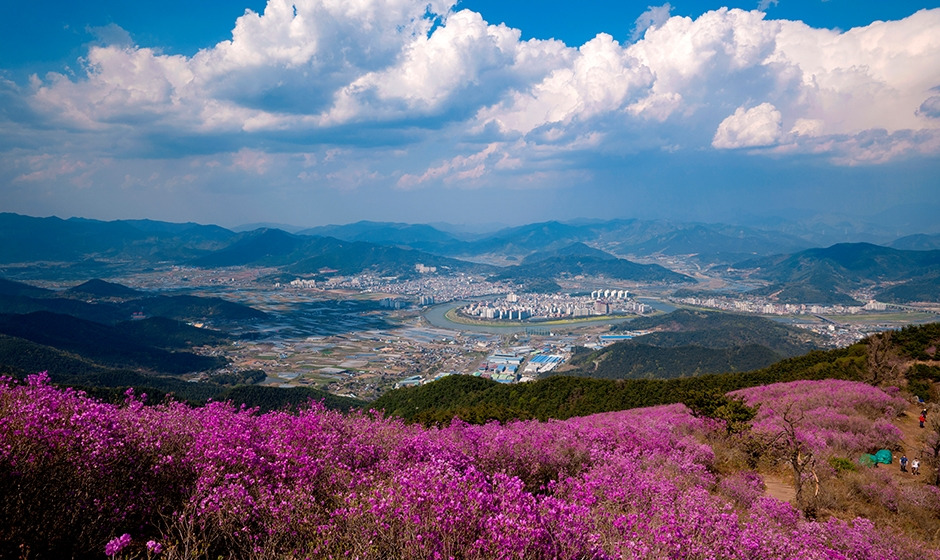 종남산은 밀양시내 맞은편에 있는 안산이다. 봄이면 진달래가 활짝 피어 산등성이는 온통 연분홍색이다.