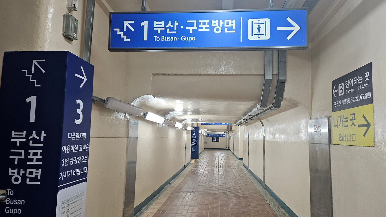 구내 지하도를 이용하여 역 구내에 3개의 다른 노선으로 이동할 수 있다. 1번 노선에서 부산 구포 방면, 2번 에서 서울 대전 밀양 방면, 3번에서 경전선(마산, 창원, 순천, 목표) 방면의 열차를 탈 수 있다.