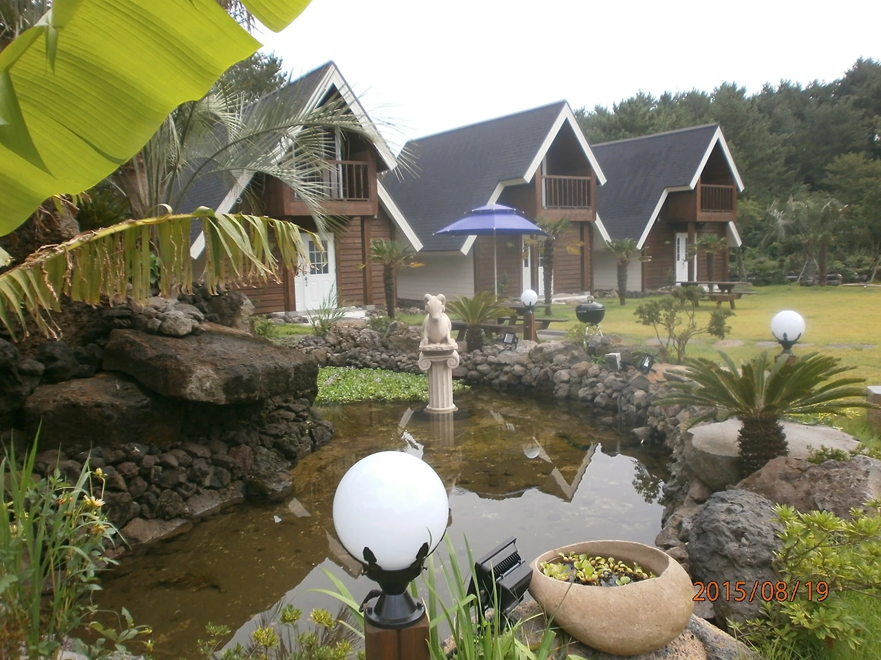 한적한 시골 밤길을 한참을 달리자 이국적인 분위기의 숙소가 나타났다. 2000평의 넓은 소나무 숲을 배경으로 한 복층 구조의 독립가구의 펜션들과 주인이 사는 관리동이 있다.