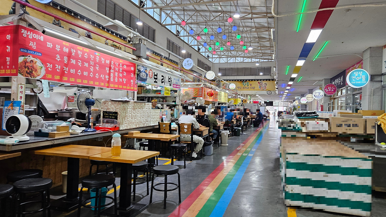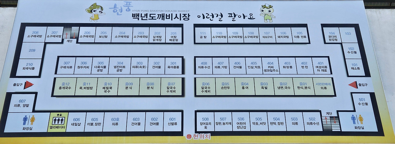 시장을 한 바퀴 돌았더니, 근심과 걱정이 거짓말 같이 깨끗이 삭 사라지는 것 같았다. 시장 마스코트는 도깨비 현이와 도깨비 풍이다. 옛날 엄마 생각이 나서 보리밥 정식을 먹었다. 싸고(6천 냥) 맛있다. 줄을 서서 기다려야 한다.