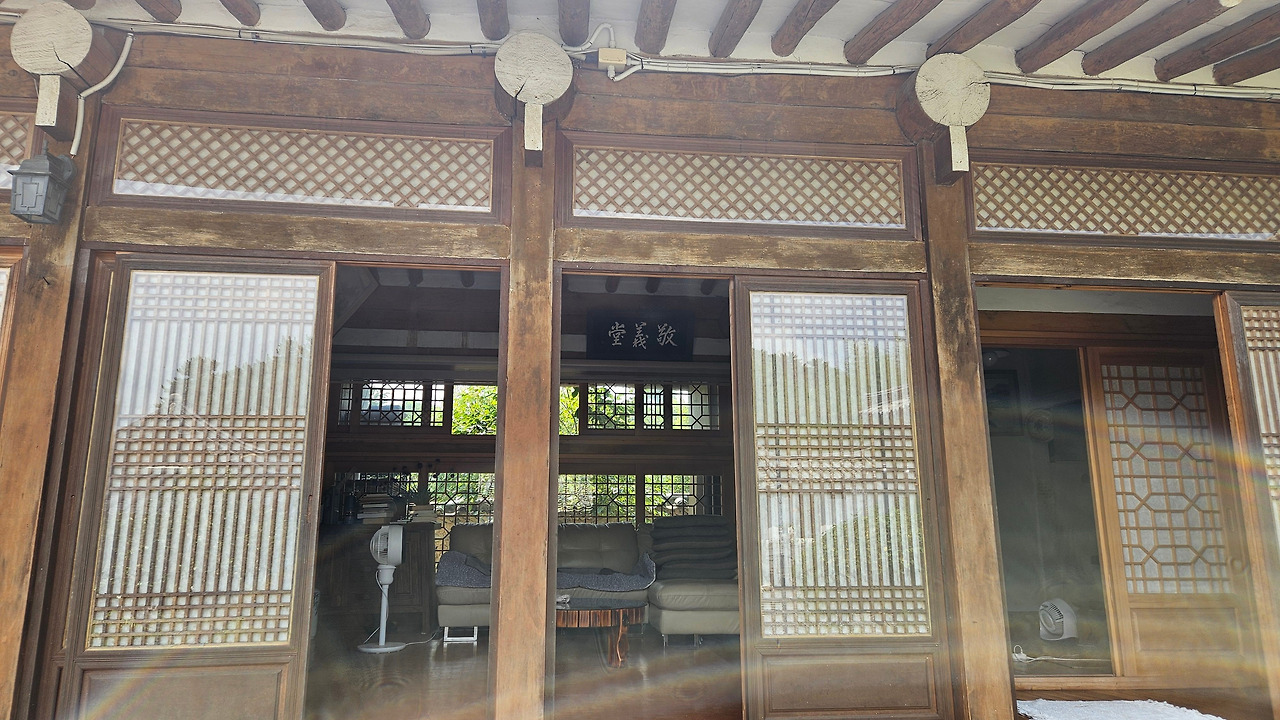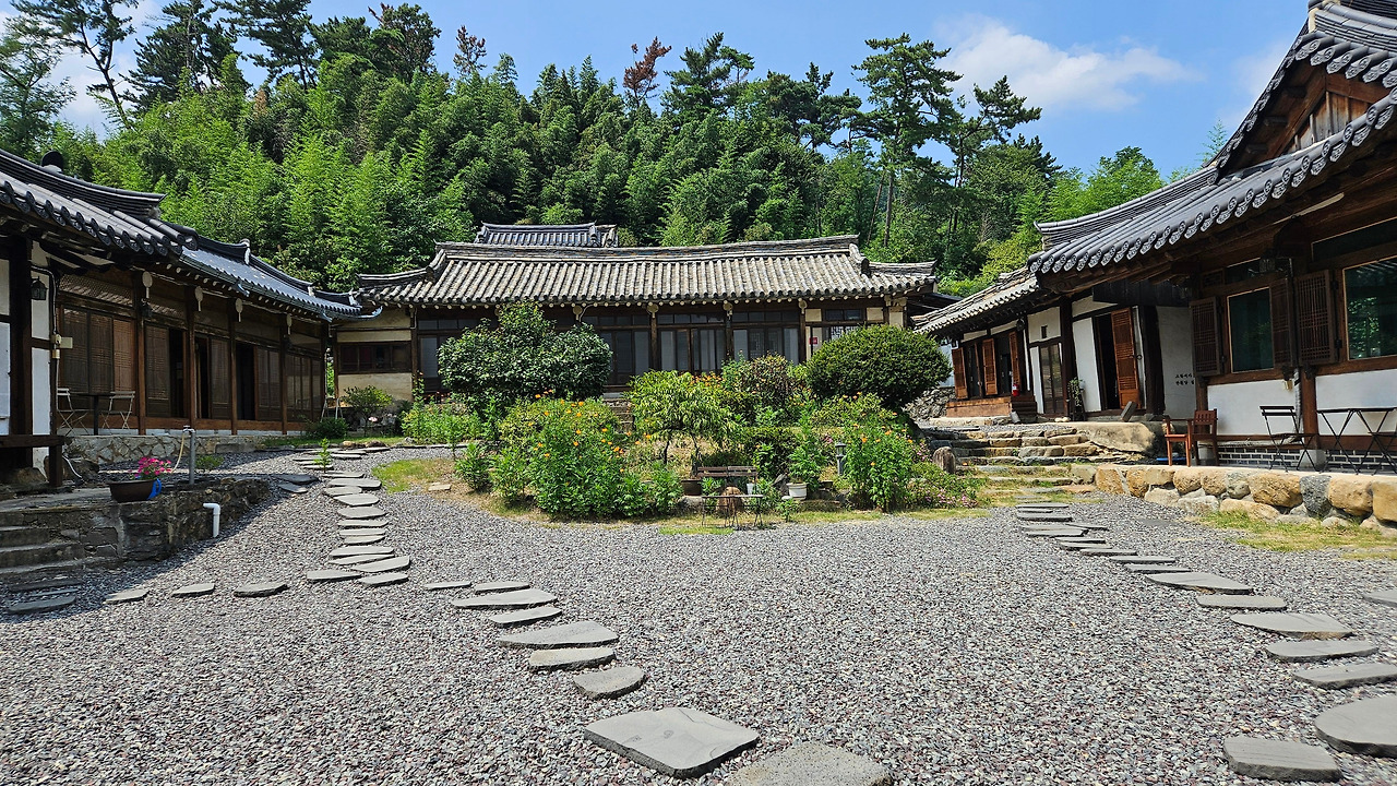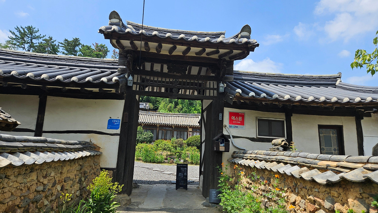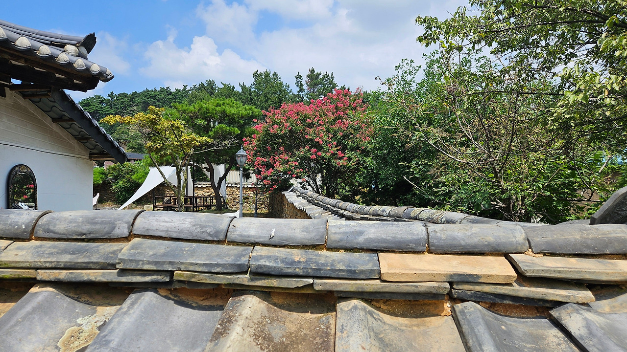 백일홍과 기와를 얹은 담이 잘 어울린다. 고택 안의 건물들을 카페와 숙소로 활용 운영하는 것이 다소 이색적이었다. 국가 예산으로 경내의 문화재를 보존 관리하고, 마을 입구나 지동지 부근에 카페와 숙소등을 별도 운영하는 것이 어떨까 하는 생각을 잠시 했다.