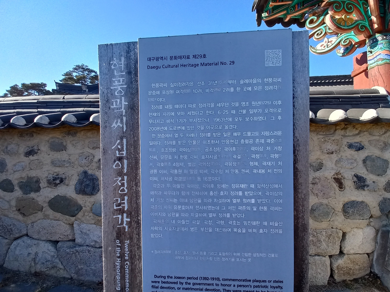 현풍 곽 씨(현지에서는 소례 혹은 솔례 곽 씨라고 부름) 집안에서 유교 도덕의 기본인 삼강(三綱, 임금과 신하, 아버지와 자식, 남편과 아내 사이 지켜야 할 도리)을 지킨 28인의 정려비다.
