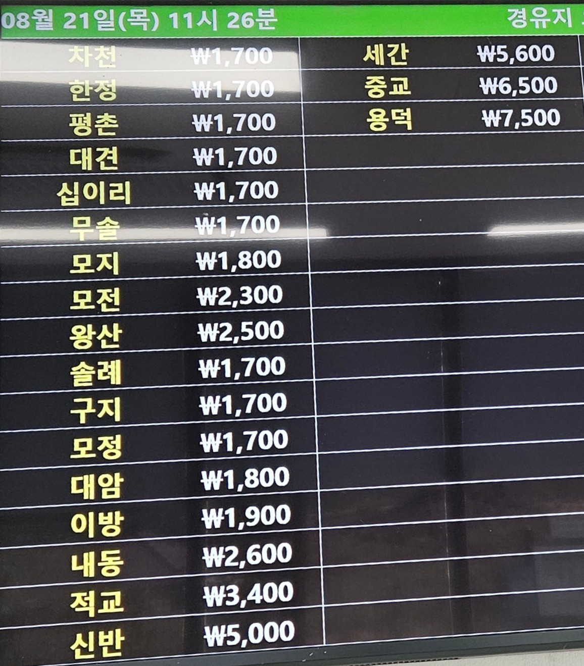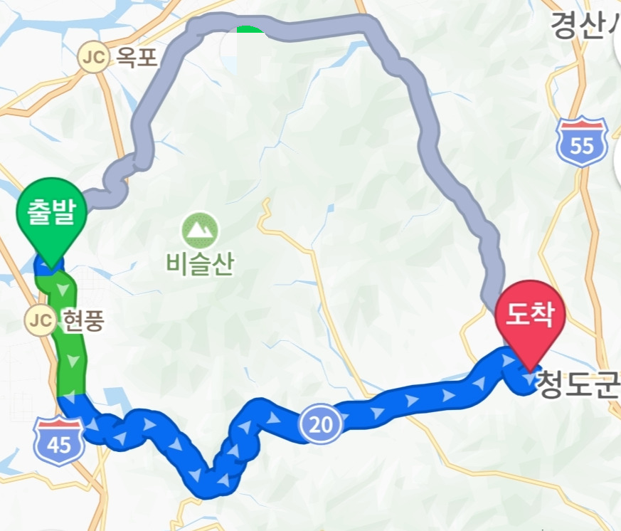 남서울터미널에서 출발(2025.08.21, 08:00 목, 야외활동 자제 경보 발령, 35도 염천지하), 현풍공영버스정류장에 도착(11:20, 약 3시간 20분 소요)하였다.