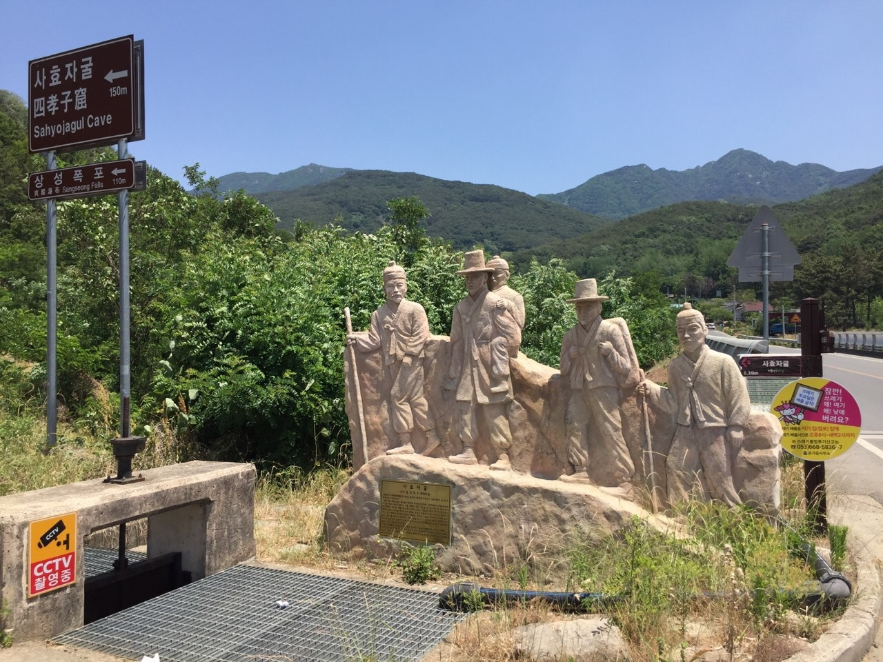 마침내 왜병들도 그들의 효행에 감동하여 아버지를 풀어주면서 ‘4 효자의 아버지(四孝子之父)’라고 아버지의 등에 종이를 부착하였다. 그 왜병들은 물론 다른 왜병들도 그 아버지는 죽이지 않도록 하였다고 한다. 그 뒤 마을 사람들이 굴 앞에 ‘사 효자굴’이라고 쓴 비석을 세워 이들의 효성을 추모하였다.